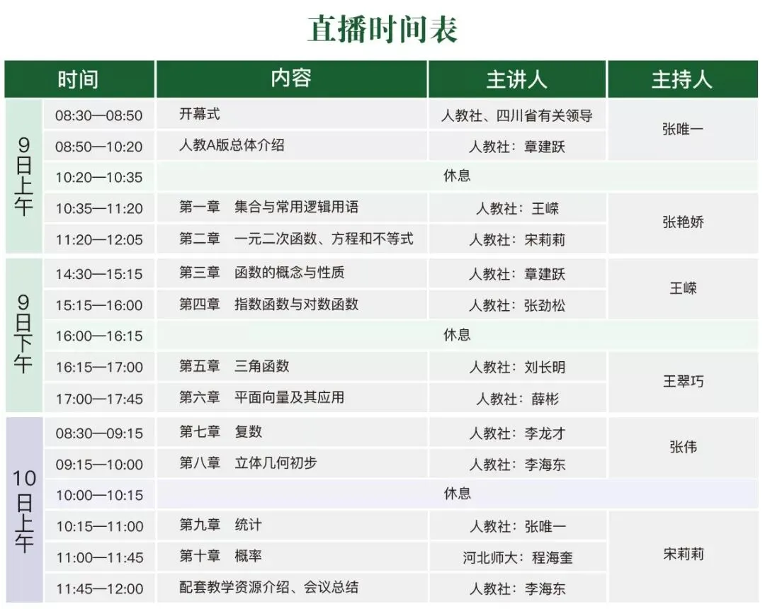 本次培训会由人民教育出版社中学数学室主办,人教数字出版有限公司提供网络支持,欢迎大家届时收看。直播结束后,您可以通过直播间随时回看全部内容。