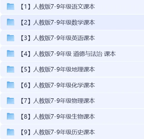 总资源:我用夸克网盘给你分享了「人教版初中课本(9科全)」