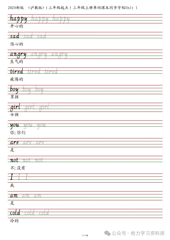 「25秋 剑桥join in版上册英语全册单词字帖练习」