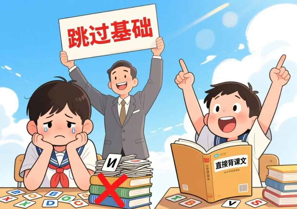 你知道更离谱的细节是什么吗?就比如说英语,很多地方三年级教材就直接跳过了26个字母的这个学习,还有音标的学习,那一上来就让你背课文、背笔记,那些句子怎么学来的?要学拼读,首先,你说小孩的abcd他都搞不清楚,或者说根本就不熟悉,那这学的是英语吗?学的是天书吗?