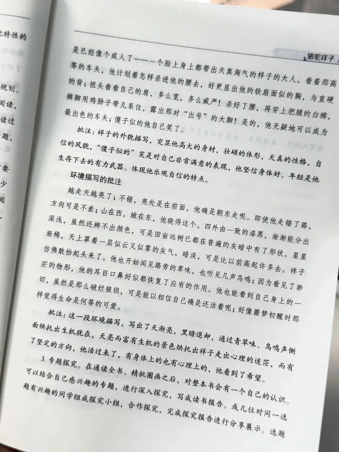 书里面最大的特点就是“课程化” 。在选用内容都是原著原文的同时,给学生们提供阅读时间规划,提出合理阅读策略,在文章中还加入了旁白批注的元素,引导学生在阅读过程中思考👇