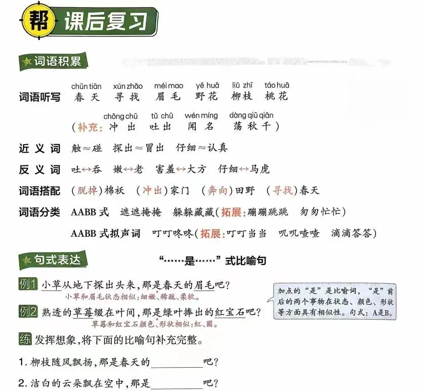 词语分类 描写春天 草长莺飞(拓展:春暖花开桃红柳绿 莺歌燕舞 万紫千红)