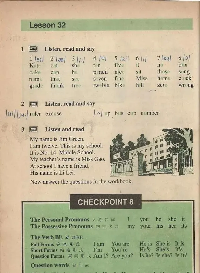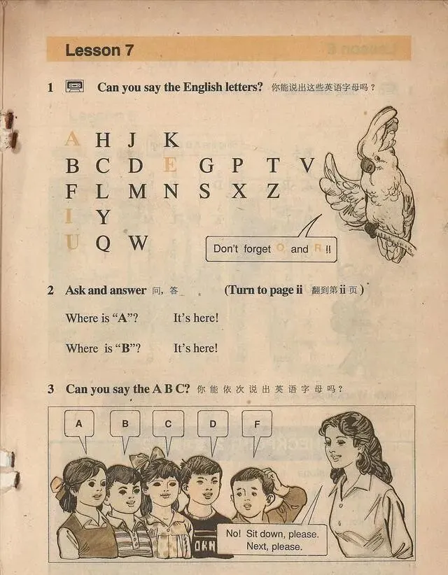 第一次接触英语 , 那种紧张感现在还记得 , 老师问"What is your name?" , 全班鸦雀无声 , 生怕被点到名。