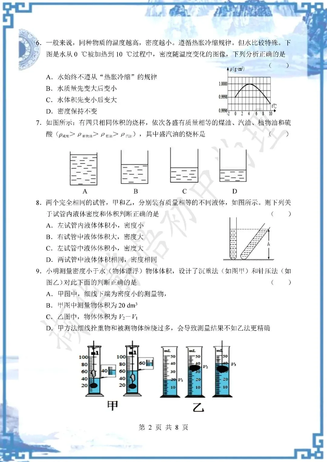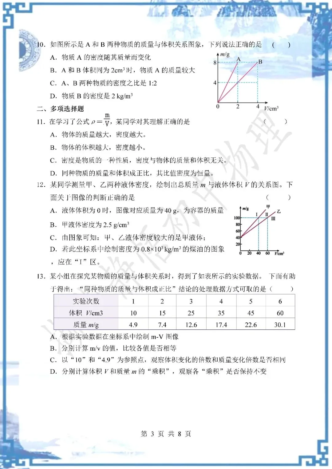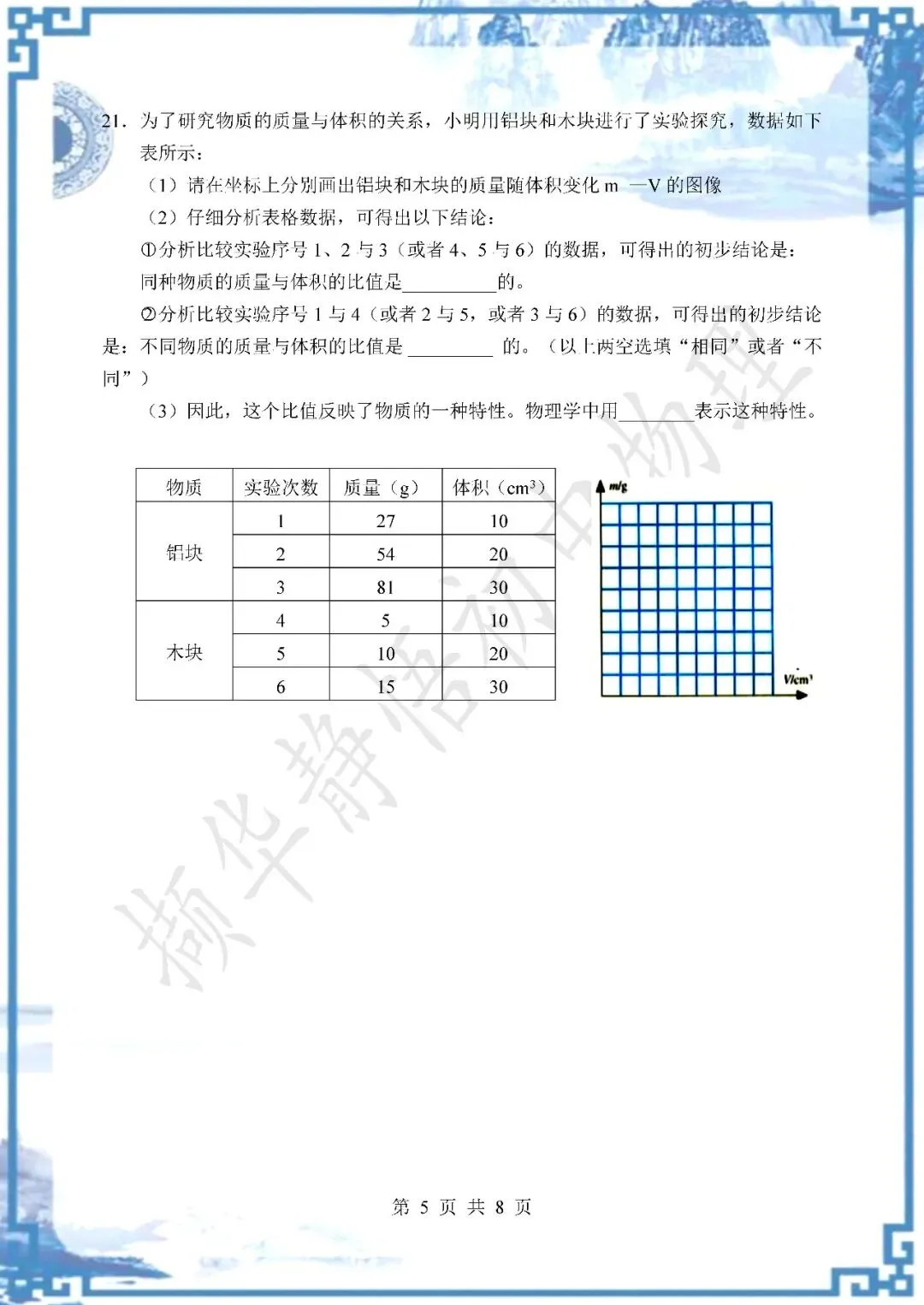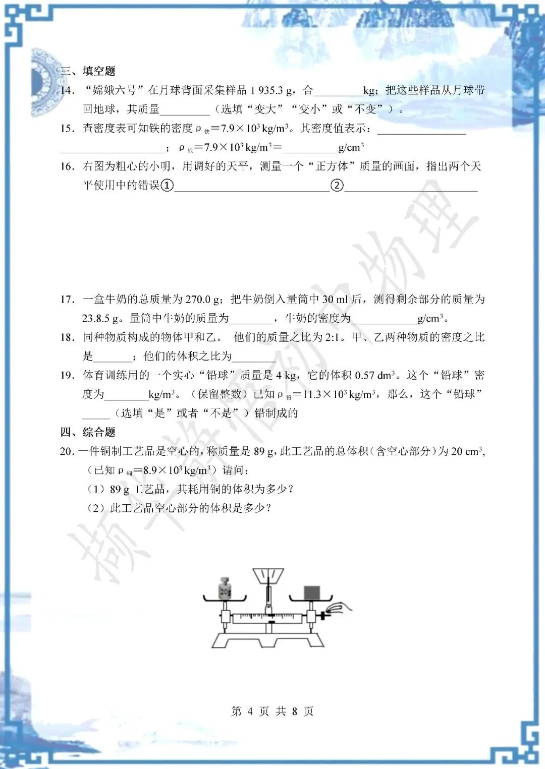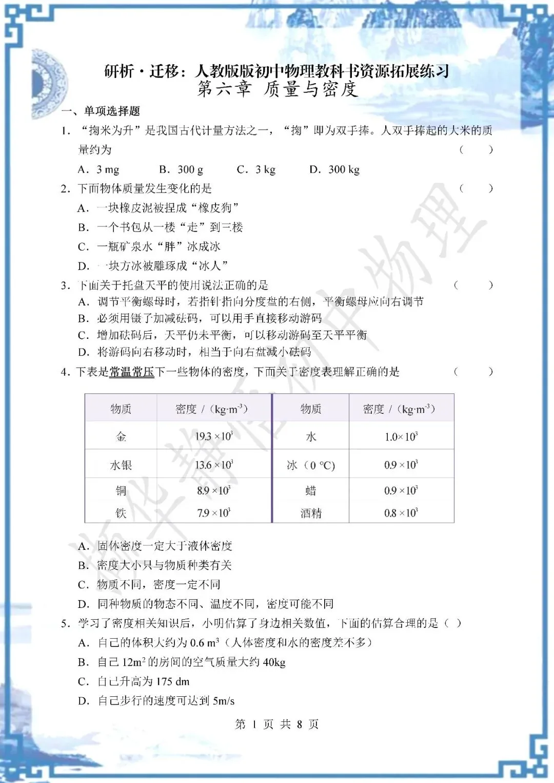 >【精选试卷】研析·迁移:人教版初中物理教材资源拓展练习——质量与密度(编写:静海区中旺镇中学 徐俊洪)