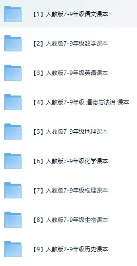 准初中生必看!2025年新人教版初中各科全套电子课本教材,覆盖《语文》《数学》《英语》《物理》《化学》《生物》《地理》《道德与法治》《历史》九大学科,包含七年级、八年级、九年级所有教材内容,PDF高清电子版,可免费下载打印!