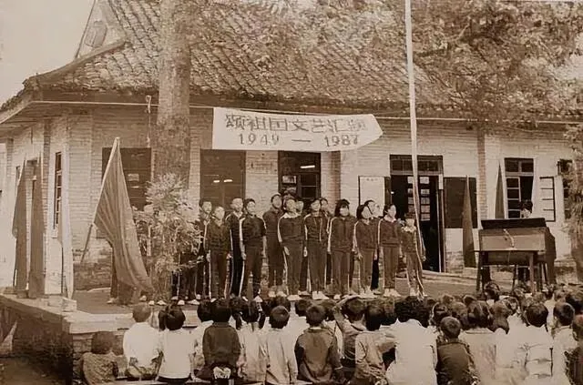 跳舞、朗诵、唱歌 , 全镇比赛 , 优秀的孩子举着旗游街 , 威风得不行!