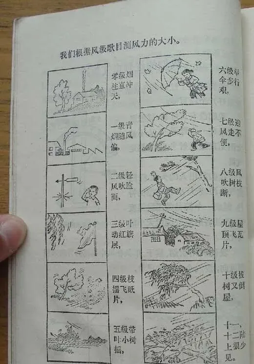 2级轻风吹脸面 , 3级叶动红旗展 , 4级风吹飞纸片 , 5级带叶小树摇......