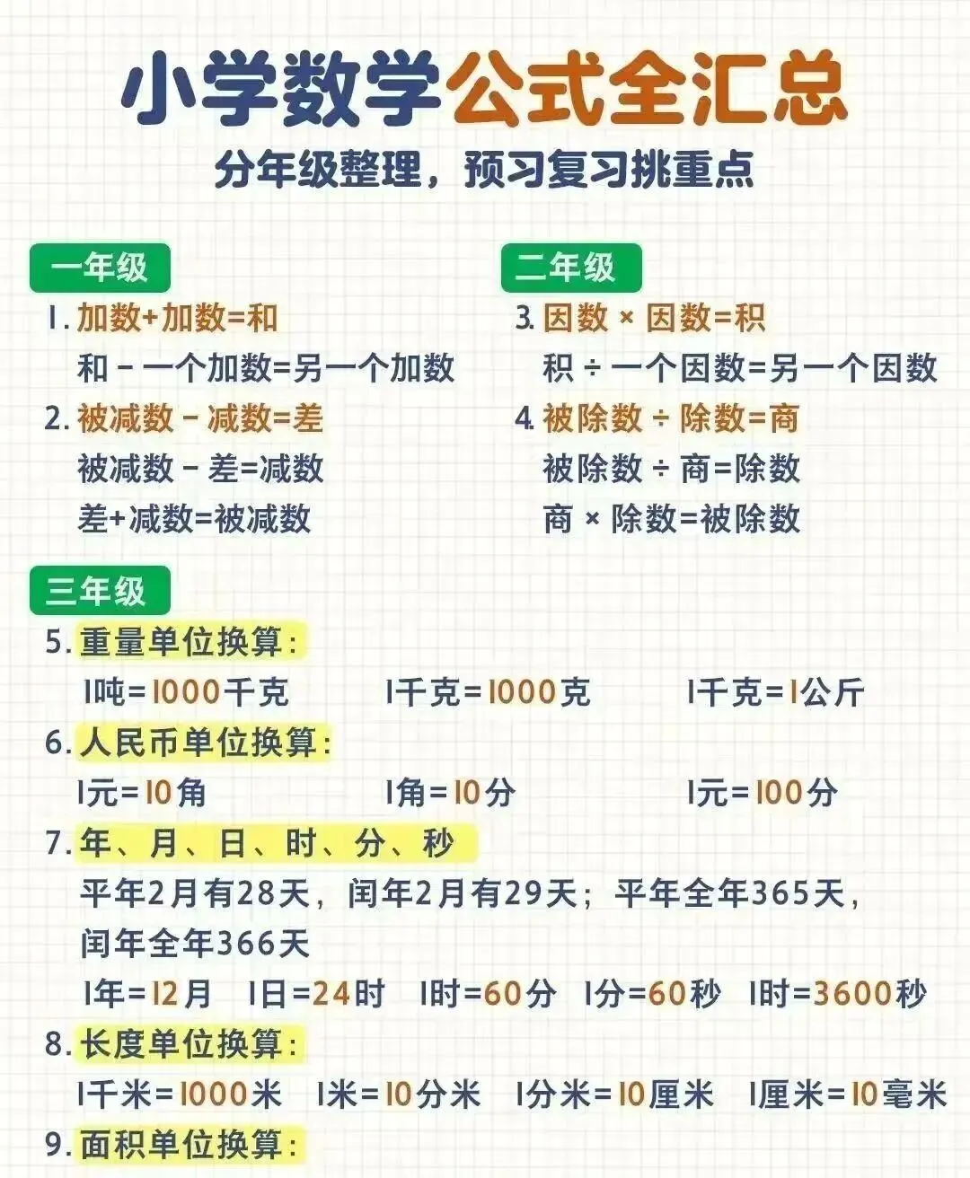 【小学复习资料】小学语数英1-6年级教材知识合集一二三四五六年级资料合集
