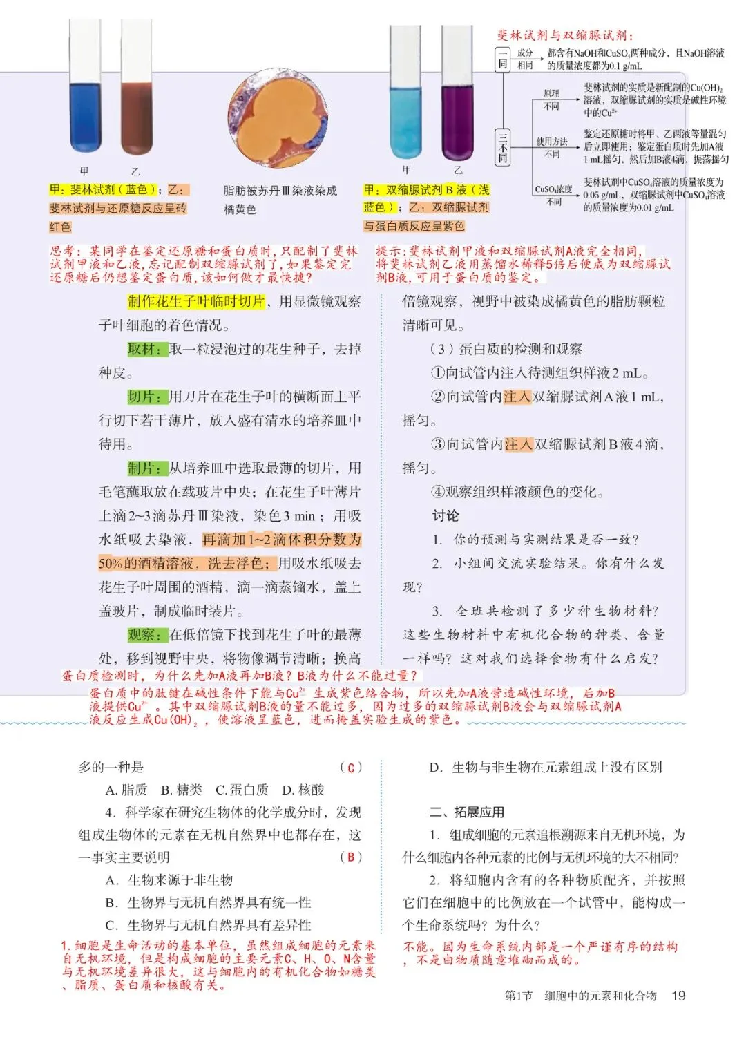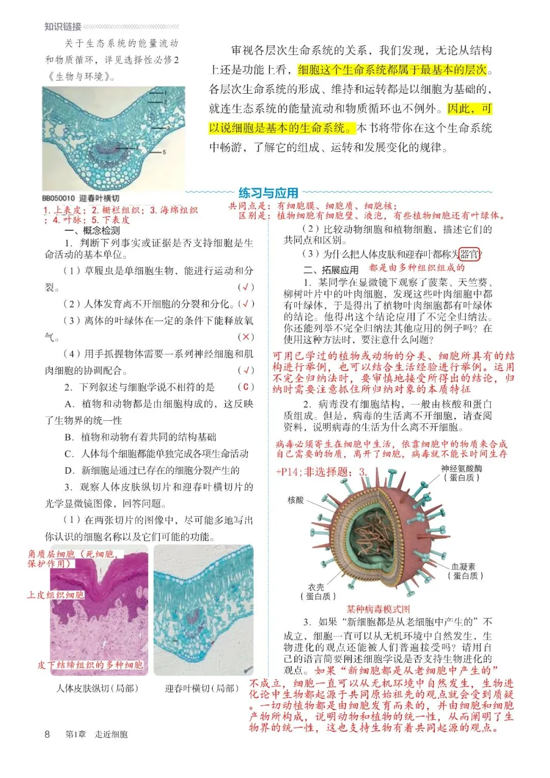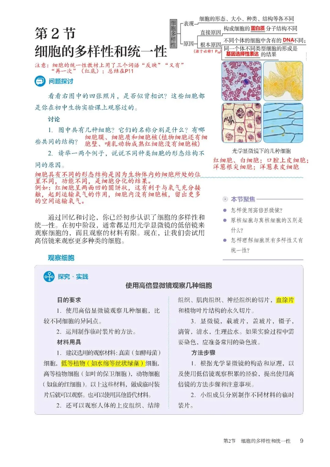 高中生物必修1教材批注