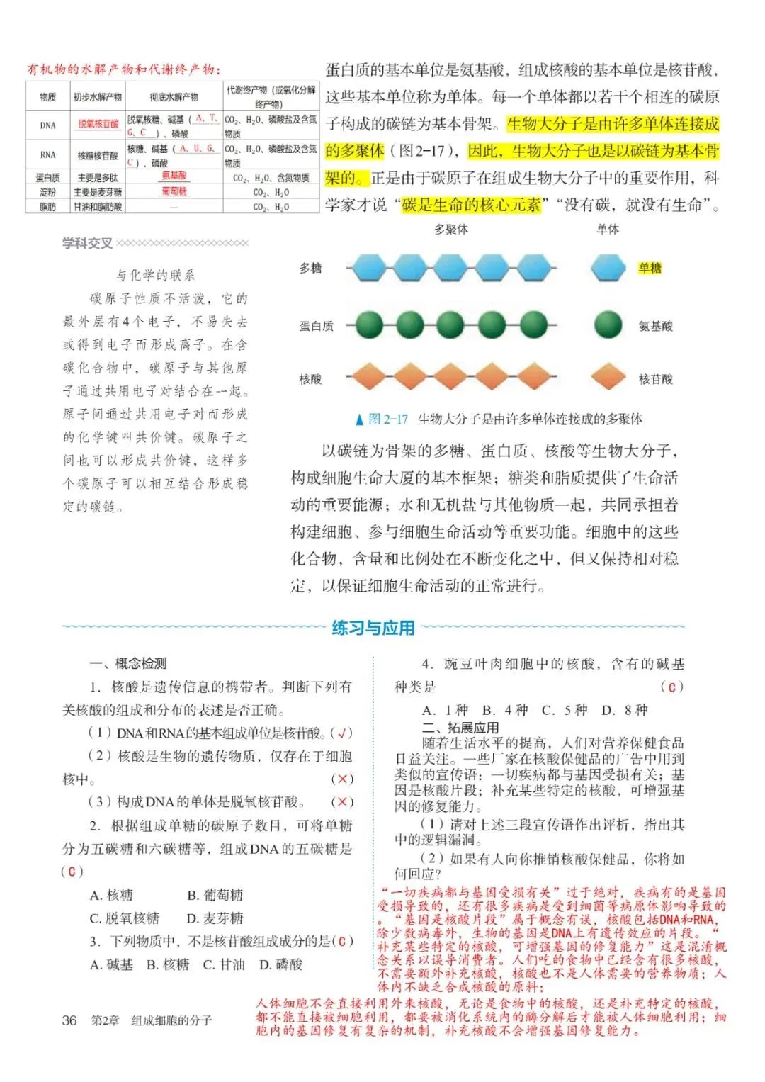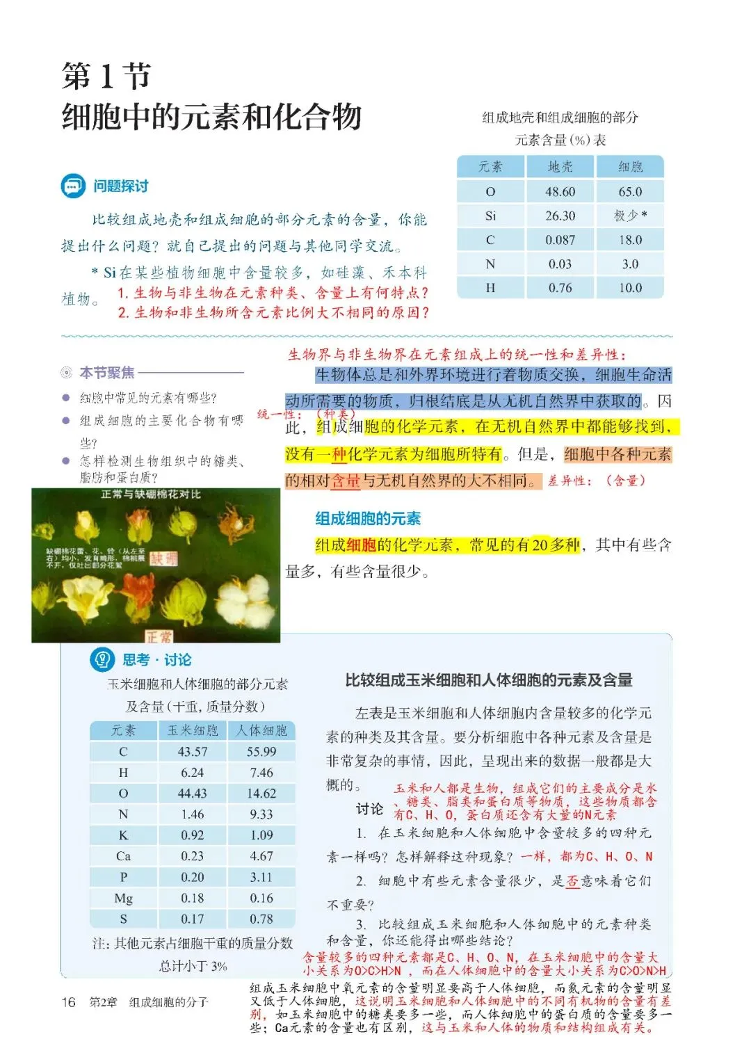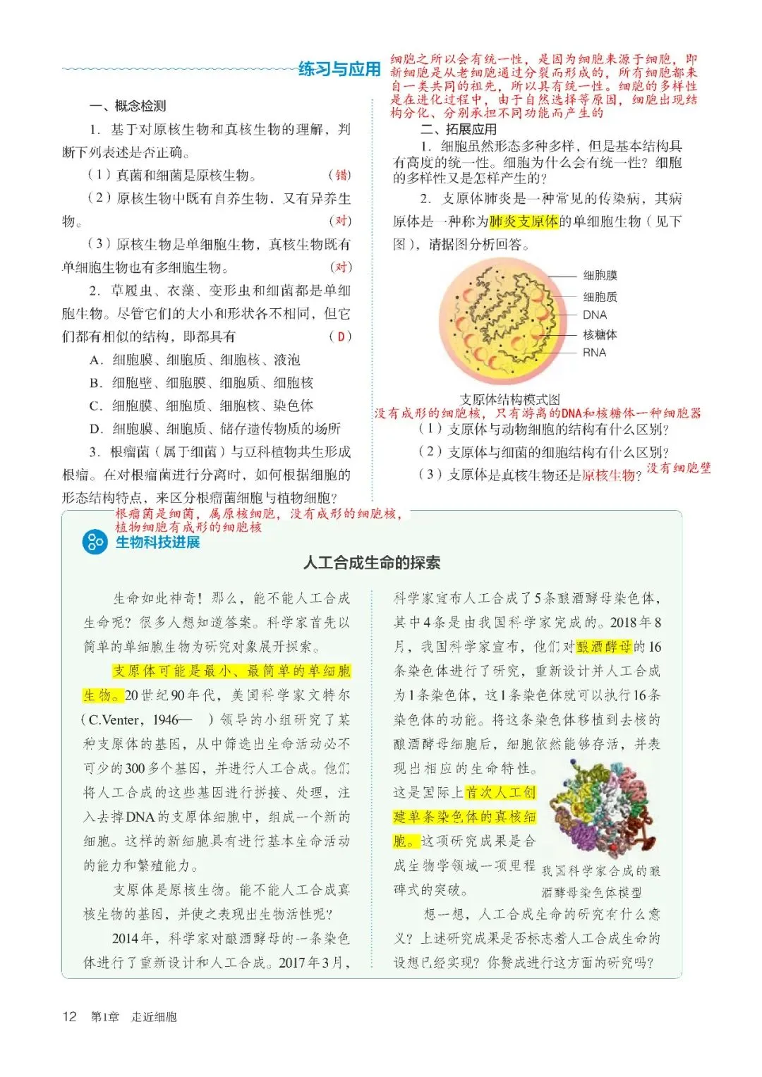 高中生物必修1教材批注