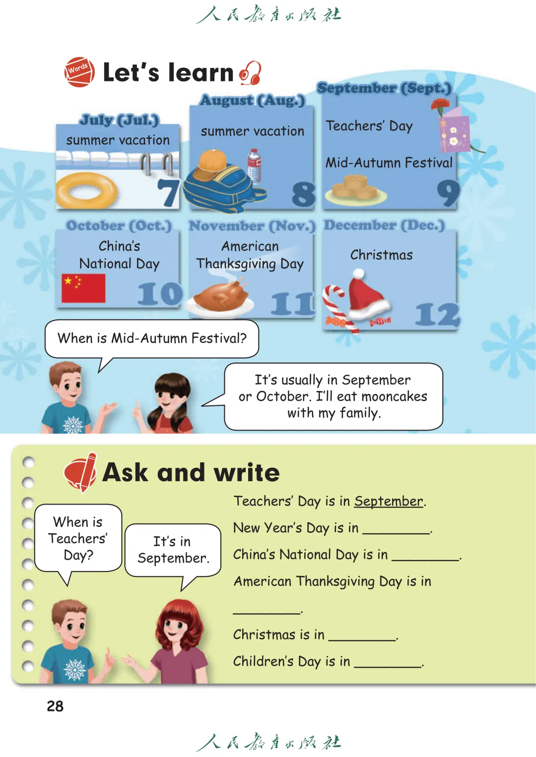 人教版PEP五年级上册Unit3英语电子课本单词