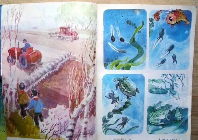 《小蝌蚪找妈妈》《乌鸦喝水》《上学路上》 , 这些课文的插图 , 每一幅都像连环画 , 精致得很。