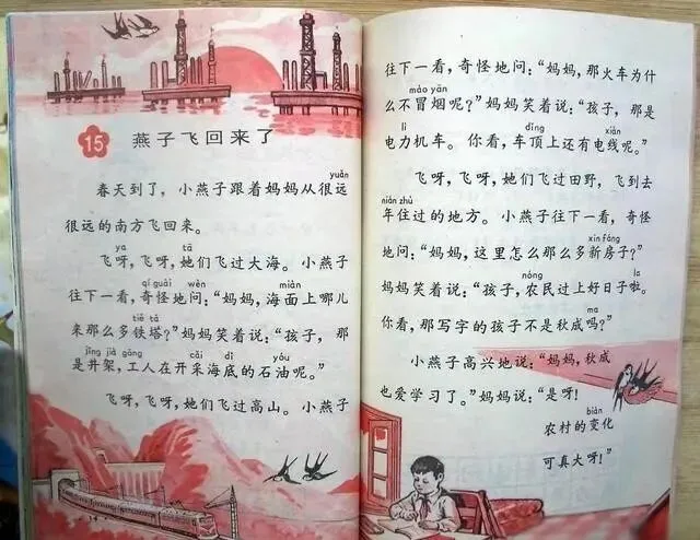 记忆是会褪色的 , 唯独一年级语文书里的颜色 , 几十年了 , 依旧鲜亮。