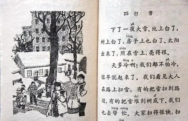 那时候的课本编排特别讲究 , 春天学春耕 , 秋天学丰收 , 冬天学下雪。