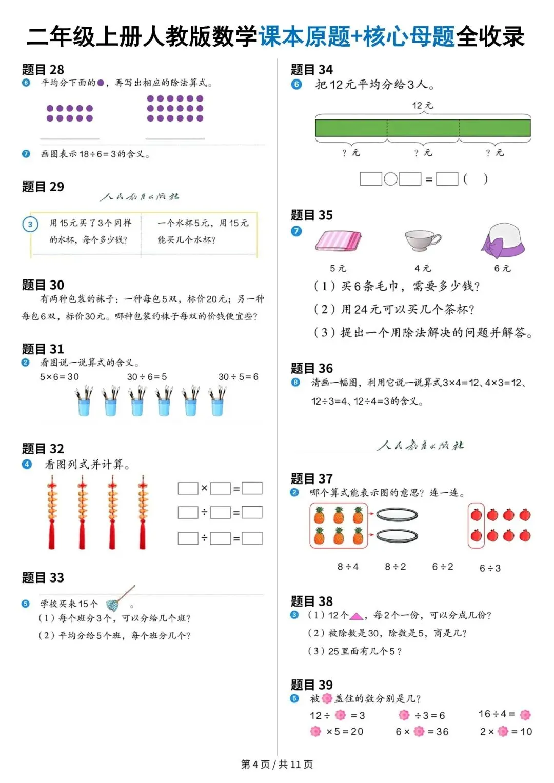 大家好,今天给大家分享的是:期末复习|小学数学 二年级上册《课本原题+核心母题全收录》。电子版可下载打印。文章末尾可直接领取,欢迎收藏和下载。如果觉得这份资料不错,建议分享到班级群/年级群,让其他家长打印出来,帮助孩子学习;如果觉得合适,请支持正版!