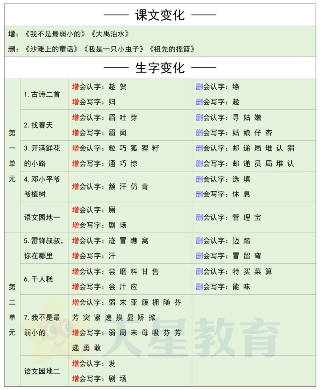 除二三年级使用新教材外,其余年级课本也有小幅修订。具体变化如下👇改版没关系,重要的是买到书要用起来啊!!!!!