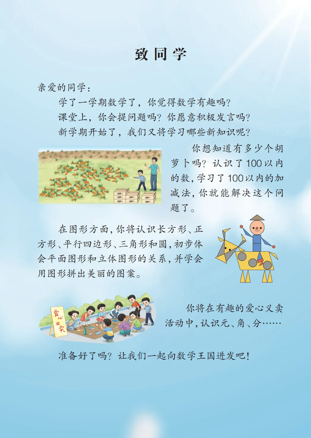 今天分享的是2026新青岛版小学数学一年级下册电子课本,希望对大家学习有所帮助。