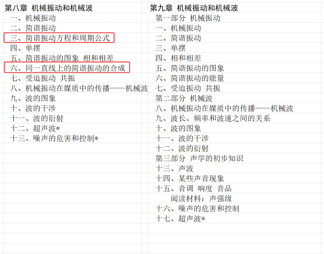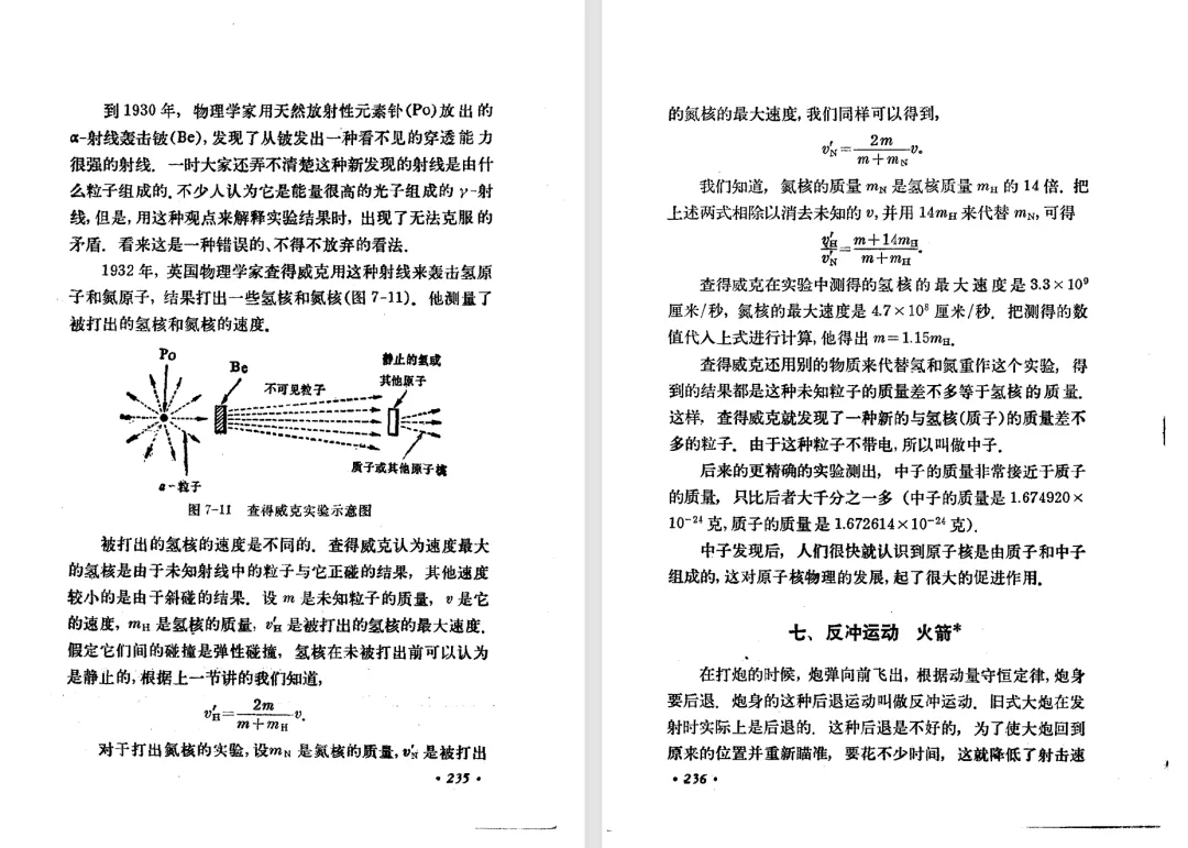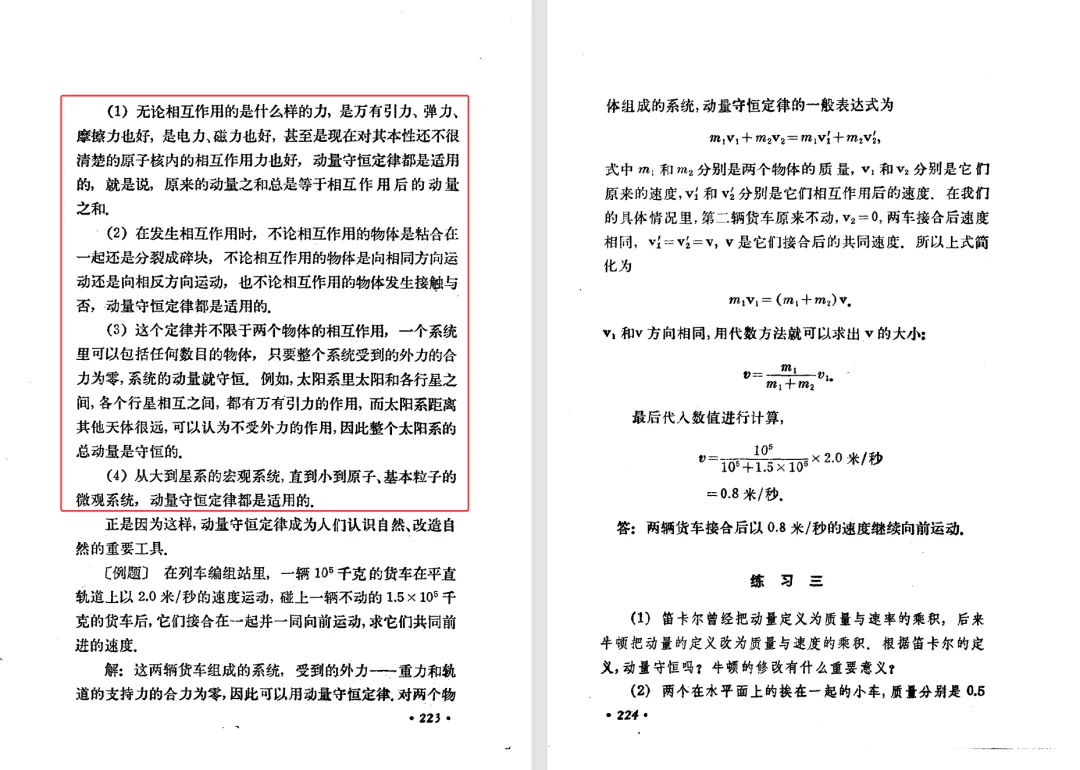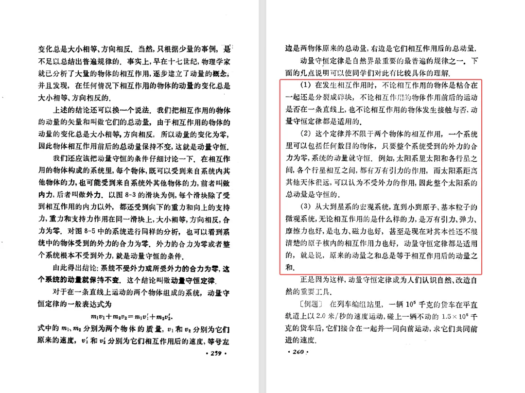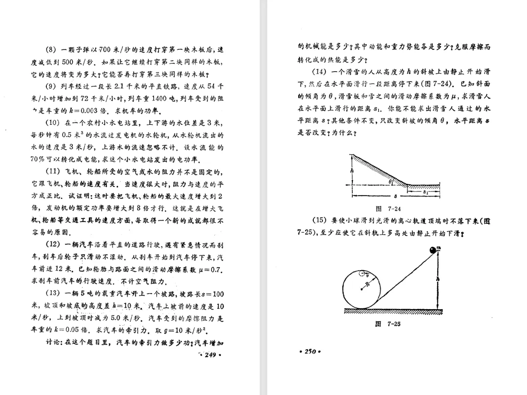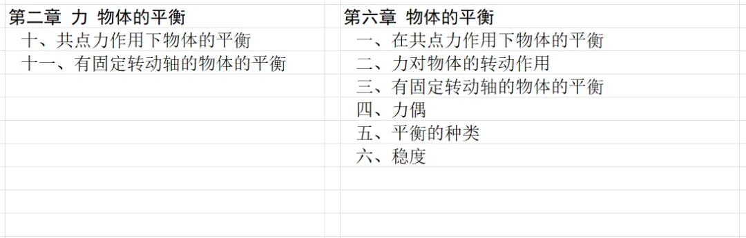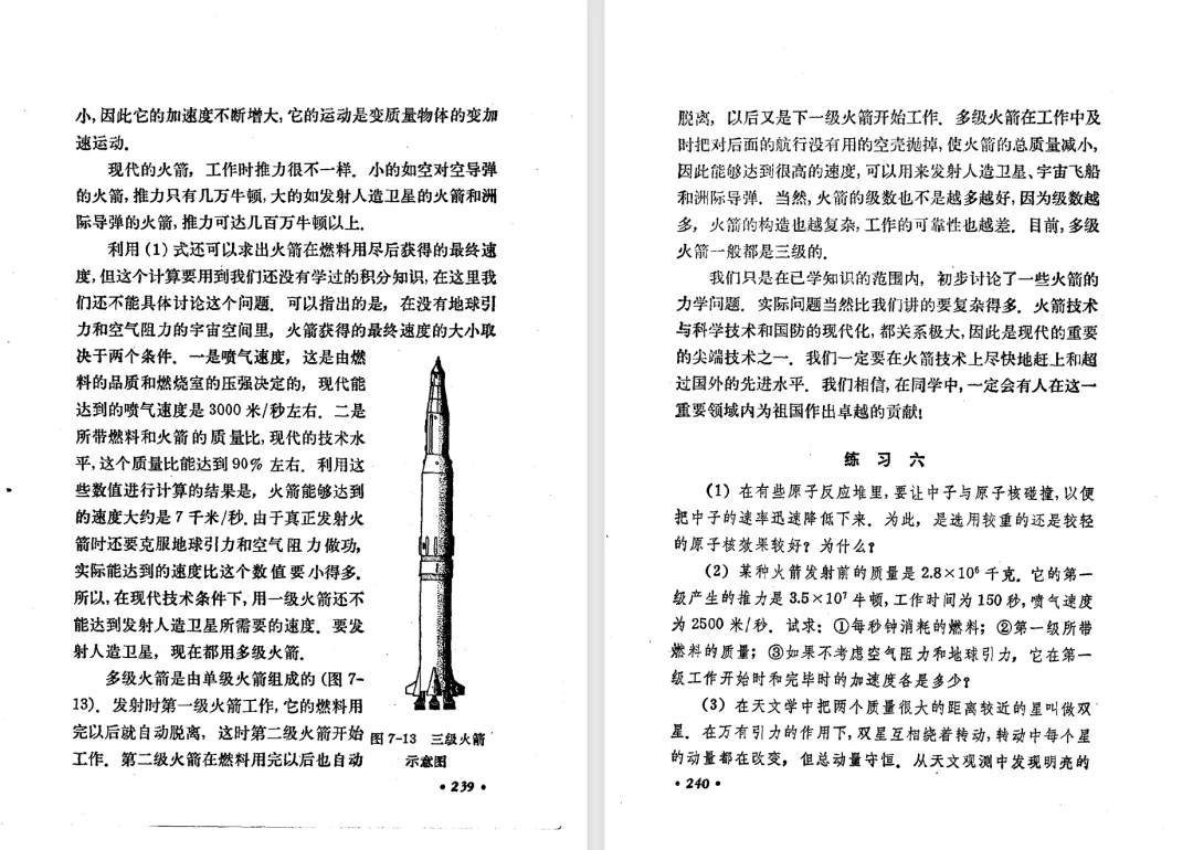 本文对高级中学课本 物理 甲种本 第一册进行详细介绍。本文将物理甲种本与上一版全日制十年制学校高中物理课本(简称旧教材)对比,展示两版教材的差异,从而了解教学要求和教材编写方式和风格的改变。通过本文的介绍,读者也可以认识到为什么人民教育出版社出版的《新中国中小学教材建设史 1949-2000 研究丛书 物理卷》(简称《物理教材建设史》)将全日制十年制学校高中物理称为20世纪最难的高中物理教材。下面再次展示旧教材和甲种本在力的部分的内容编排。左边一列是旧教材的,右边一列是甲种本的。值得注意的是,甲种本在第一章末尾才出现矢量和标量,最后一节仅介绍同一直线上的矢量的运算。旧教材在第一节 力,就说明力是矢量,并且介绍了矢量和标量的区别。下面是旧教材的相关页面。本节给出了力的平行四边形法则和三角形法则,但是没有给出力的合成的矢量表达式。显然,甲种本对矢量和矢量计算的要求相比旧教材降低了。旧教材不仅强调力的运算的矢量表达式,还强调力的运算的平行四边形法则和三角形法则;甲种本主要强调力的运算满足平行四边形法则和三角形法则。换句话说,甲种本弱化了力的运算的数学背景,降低了教学要求。先看甲种本增加的两个阅读材料。第一个阅读材料严格说是实验。第七节,教材给出了隔离法这一名词。旧教材在牛顿运动定律那一章才给出。下面是旧教材物体受力分析小节。旧教材给了三个例子,比甲种本还多。尽管教材没有提隔离法这个词,所使用的受力分析法同样是隔离法。下面看甲种本第六节 变速直线运动 平均速度 即时速度。甲种本同样采用极限法介绍即时速度。但是,甲种本删除了旧教材中利用位移-时间图象求即时速度的内容。下面展示旧教材对应的小节。下图第64页划线的文字开始,介绍利用位移-时间图象求即时速度。用位移-时间图象求即时速度,本质上是用函数图象求切线的斜率,这在全日十年制学制时期是高中二年级第二学期的内容,在高中一年级刚开学没多久在物理课提前接触这些数学知识,要求太高了。可能物理教材的编写者意识到了这个问题,所以在甲种本中删去了这部分内容。甲种本淡化了即时速度的数学背景,降低了即时速度的教学要求。如下图所示,由于教材将讨论的运动限制在了匀变速直线运动,所以只需要给出标量形式的加速度表达式。教材还增加了一个阅读材料,讲述速度和加速度的区别。如下图所示,旧教材没有将运动的讨论范围限定在匀变速,而是笼统地说变速,而且教材给出了矢量形式的加速度表达式。在运动定律这章,旧教材和甲种本差别最大的是牛顿第二定律。旧教材只有两节,甲种本有四节。甲种本分别用三个小节介绍引出牛顿第二定律的内容:物体运动状态的改变,加速度和力的关系,加速度和质量的关系,最后得出牛顿第二定律。而旧教材是在一节里完成对引出牛顿运动定律的实验,以及牛顿第二定律的介绍,在此基础上,再用一节对牛顿第二定律进行扩展补充。下面先看甲种本如何介绍牛顿第二定律。甲种本用第二、三、四三个小节做铺垫,到了第五节才真正介绍牛顿第二定律。下图第113页,教材给出了牛顿第二定律的标量表达式。后面介绍力的独立作用原理,讲物体在收到多个力的作用下的加速度如何计算。下图第114页,教材进一步给出物体在多个力的作用下的牛顿第二定律的表达式,这里用的也是标量表达式。再看旧教材 第二节 牛顿运动定律。本接开头教材仅仅用很短的一句话介绍力如何改变物体的运动状态,接下来教材仅仅通过定性地描述不同的实验结果,得出加速度和力的关系,以及加速度和质量的关系。如下图第114页所示,教材先给出标量形式的牛顿第二定律公式,再给出矢量形式的牛顿第二定律公式。有关牛顿第二定律的讨论,单独成节。如下图第116页所示,教材给出矢量形式的物体受多个外力情况下的牛顿第二定律。第117页的物体做曲线运动的条件,甲种本放在了曲线运动一章介绍。比较旧教材和甲种本牛顿第二定律的内容,我们可以发现,甲种本花了更多的篇幅介绍牛顿第二定律的背景,如何通过实验推导出牛顿第二定律,让学生经历牛顿第二定律发现的过程。旧教材对牛顿第二定律的介绍篇幅较少,更像是给学生灌输知识,但是旧教材给出了牛顿第二定律的矢量表达式,对学生的要求更高。下面展示甲种本增加了超重和失重的内容。旧教材是在讲人造地球卫星部分才介绍超重和失重的,而且篇幅很短。通过对比旧教材和甲种本,我们可以发现,甲种本对知识的讲解更详细,并且主要采用标量语言描述运动定律,几乎没有采用矢量语言。所以,甲种本的数学背景和教学要求是更低的。下面看甲种本的 第二节 运动的合成和分解,这节内容不多,而且没有分开介绍位移的合成和速度的合成,比较笼统。下面看旧教材对应的小节。旧教材的讲解非常详细,先讲平面上的位移,再讲位移的合成与分解,最后讲速度的合成与分解。本节全程使用矢量表达式。加下来看甲种本 第六节 向心加速度,本节给出了匀速圆周运动向心加速度的方向和大小的推导。需要注意的是,A点和B点速度的差值\Delta v的计算是矢量运算。旧教材对于向心加速度的推导更详细。旧教材对于匀速圆周运动向心加速度方向的推导更详细,有角度的计算,详细地说明