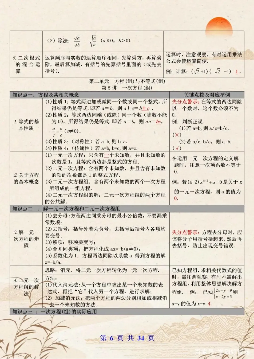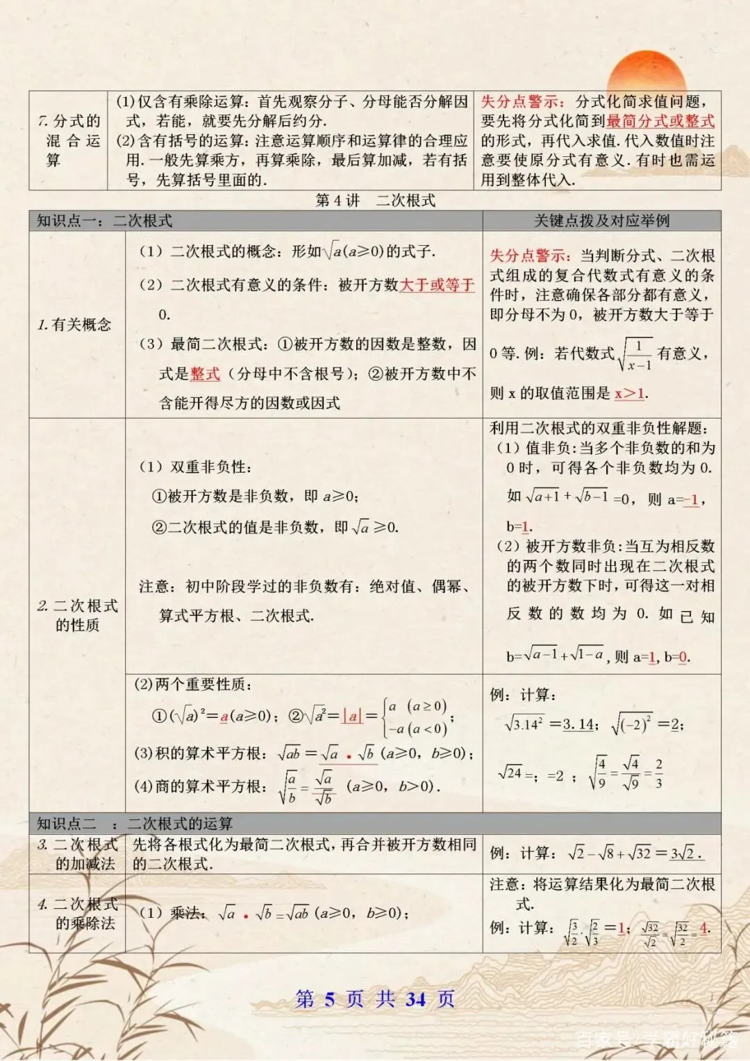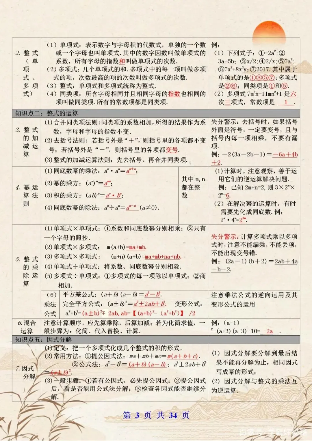 衡中名师分享:初中数学全册教材梳理(表格版),3年考点全囊括