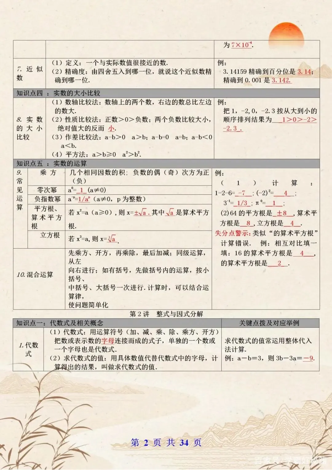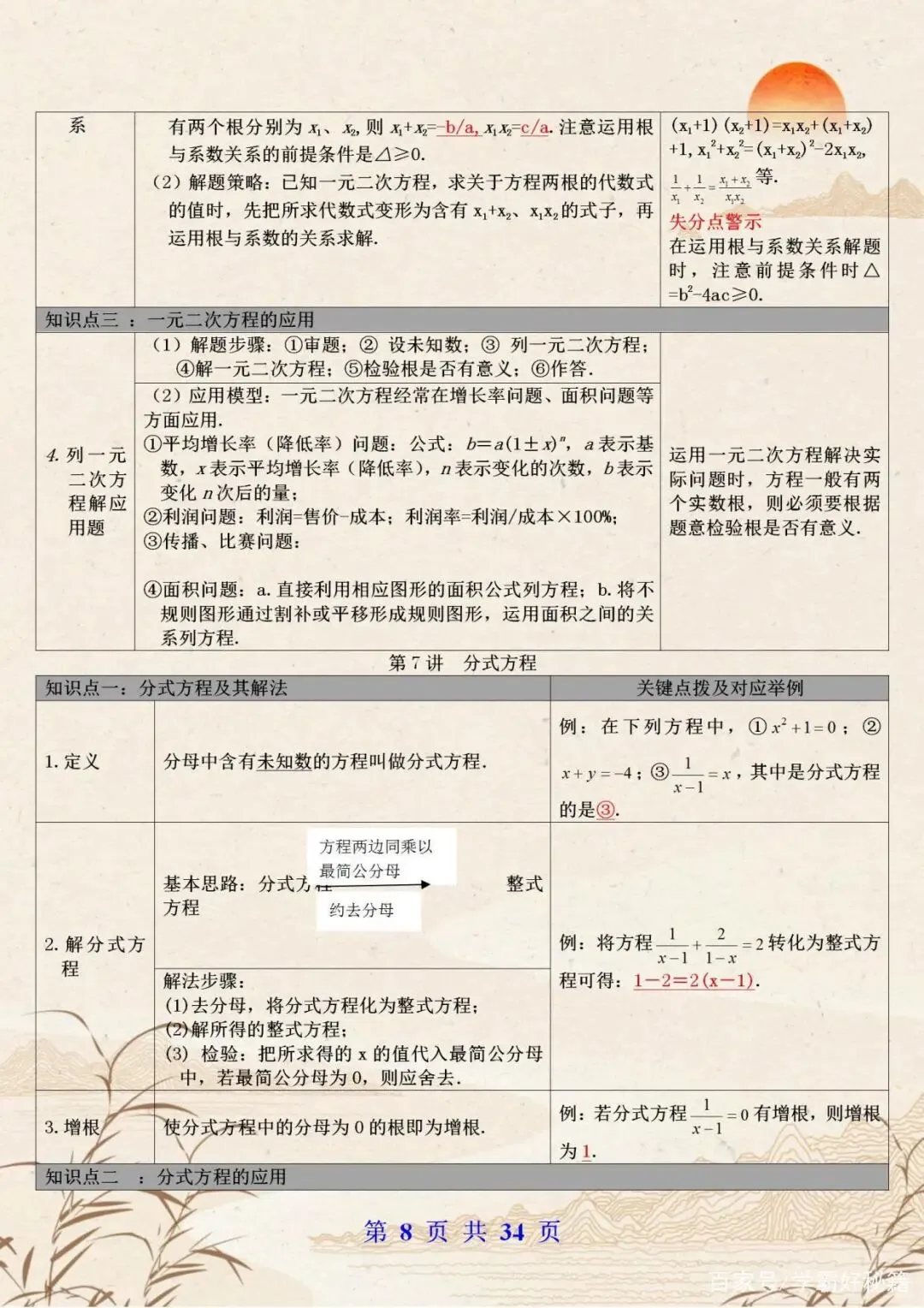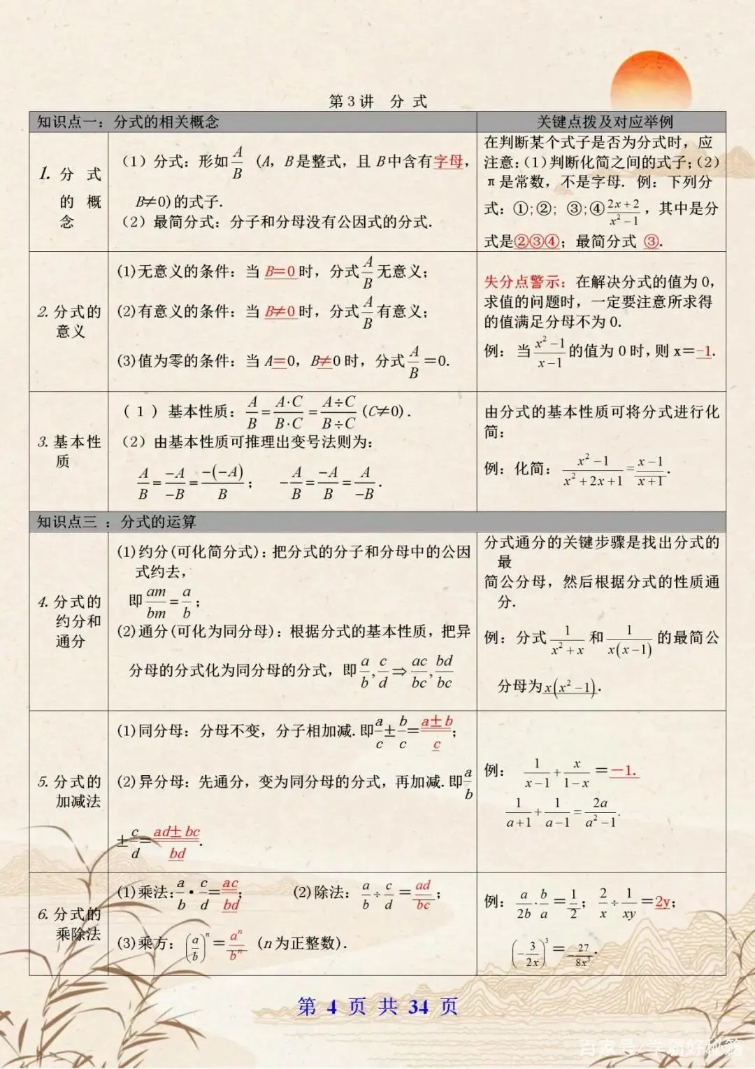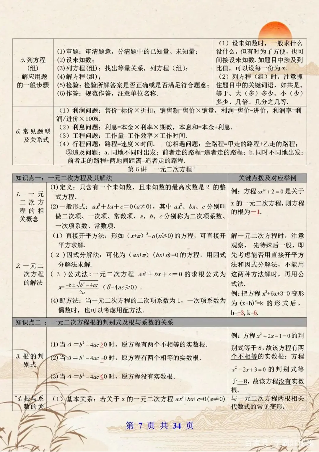 衡中名师分享:初中数学全册教材梳理(表格版),3年考点全囊括