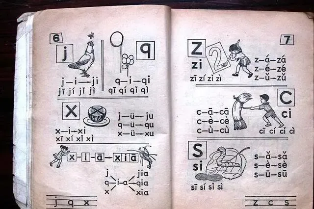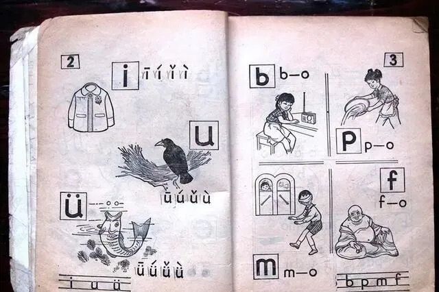 a o e , i u ü , 这些基础发音 , 当年是要分组读的。