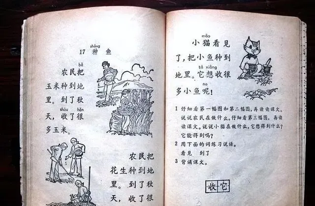 那时候的课本 , 内容简单 , 道理朴素 , 没有现在这么难。 一年级的短文 , 读起来朗朗上口 , 几十年过去了还能记住。