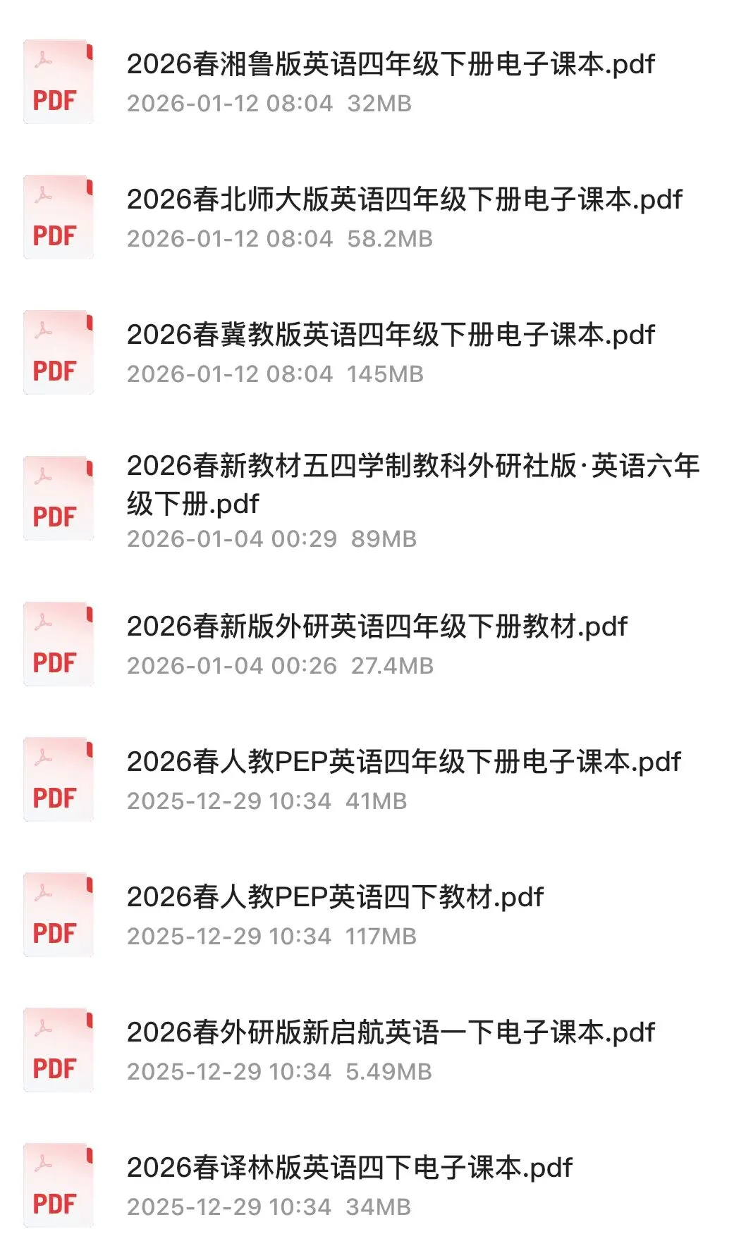 「26春最新小学语数英电子课本」