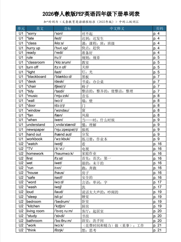 26春小学英语人教PEP版课件资源包(课本+单词表+字帖+知识清单+课堂笔记),附链接免费下载
