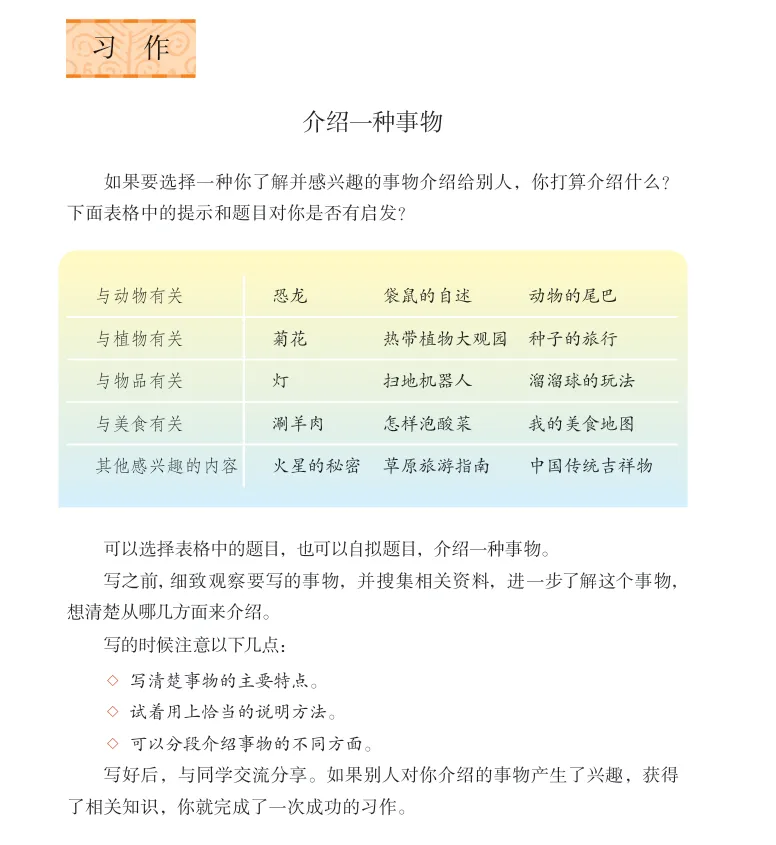 翻开五年级课本,有一个单元的习作是介绍一件事物。