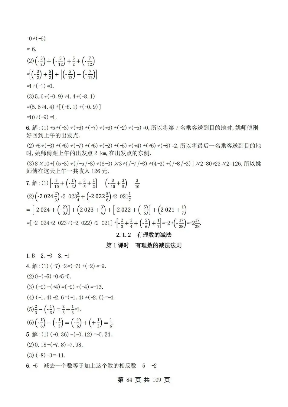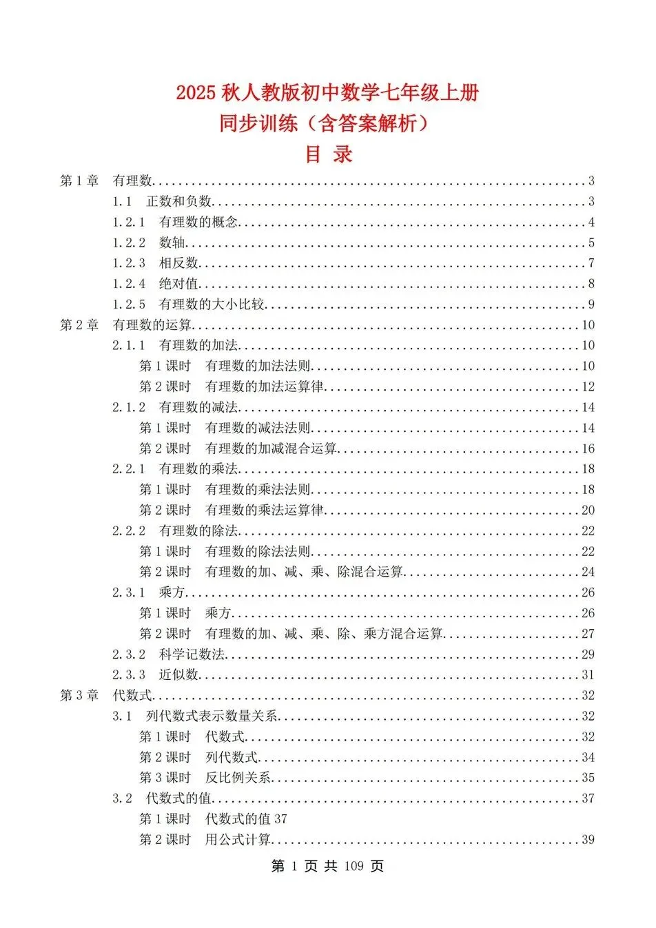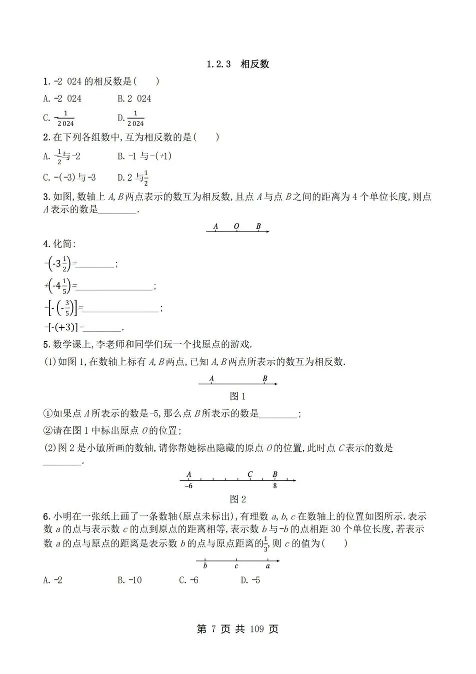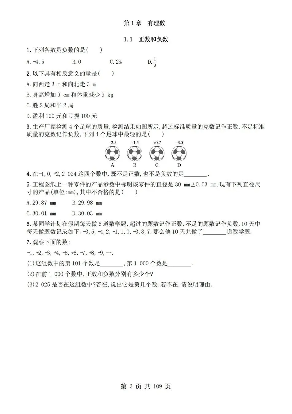 同步训练,初中数学七年级上(含解析)新教材初一上册人教版,1-6章节练习检测,CSXQ318,
