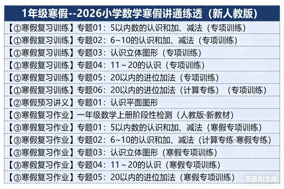 【1】1️⃣年级寒假--2026小学数学寒假讲通练透(新人教版),包含复习讲义,预习新教材讲义,寒假作业,三部分