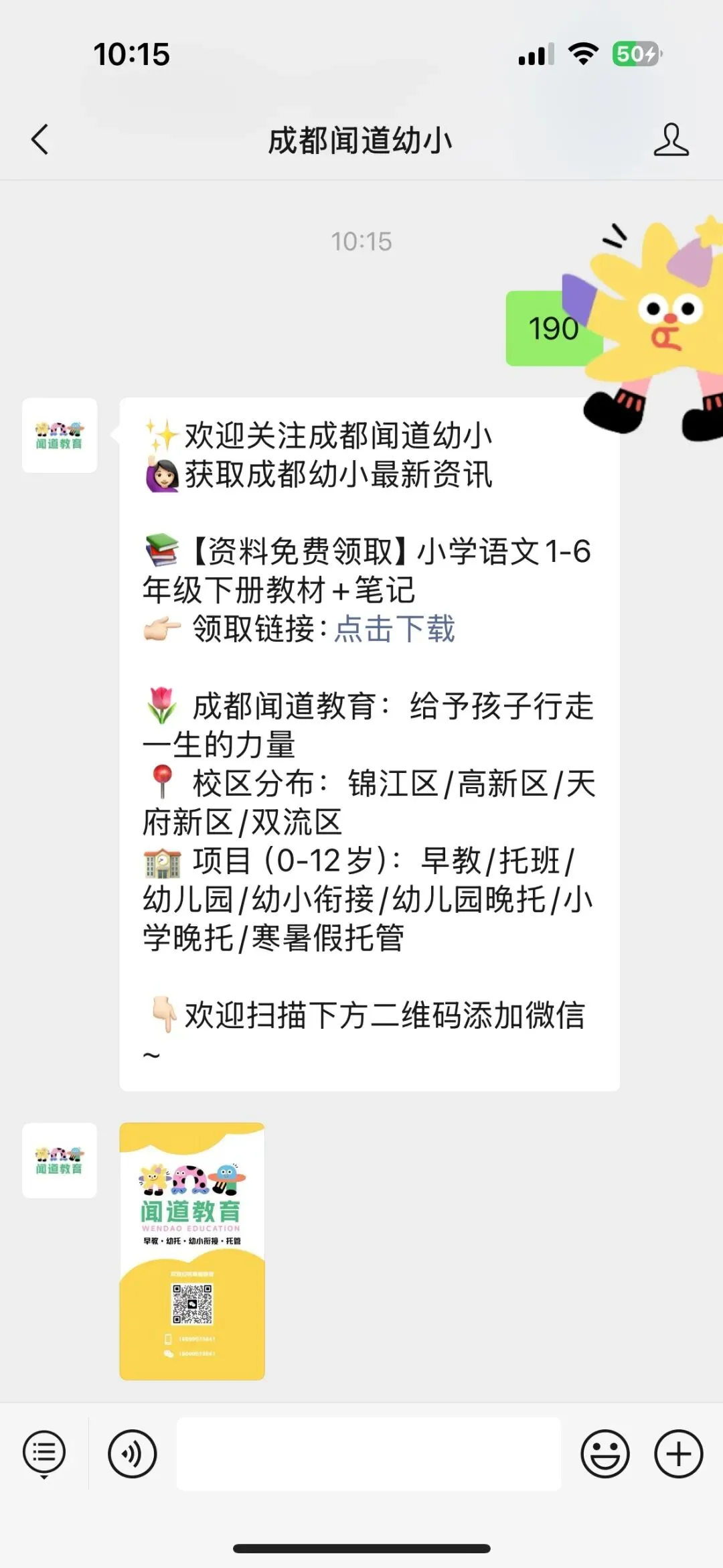 👇🏻或直接长按下方二维码关注【成都闻道幼小】公众号,回复“190”即可自行网盘下载~