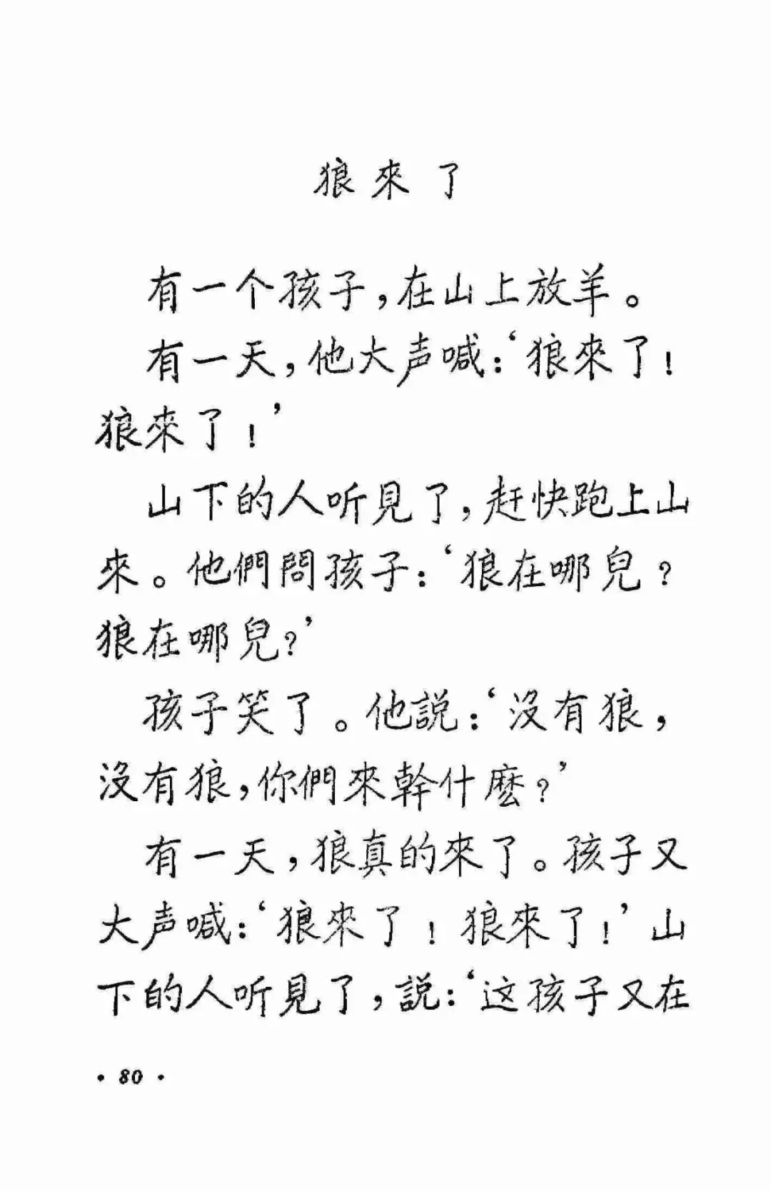 刚才说了,我喜欢这本书里两篇小文,一篇是《秋天》,另一篇就是《小小的船》。关于《秋天》,我专门写过一篇文章介绍过它的“增”字史。没错,我说的《秋天》就是现在孩子们小学语文课本里的《秋天》。关于《小小的船》,我也专门写过一篇文章讲它的故事。除了这两篇文章以外,《拔萝卜》、《大雪》、《狼来了》、《小鸡和小鸭子》等课文有些也依然以各种形式出现在现在的小学课本里。接下来,让我们跟着这些永恒的课文看着邓散木的手写体来结束这篇文章吧。