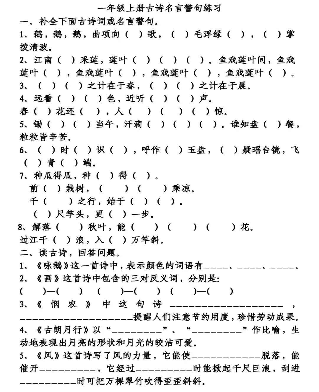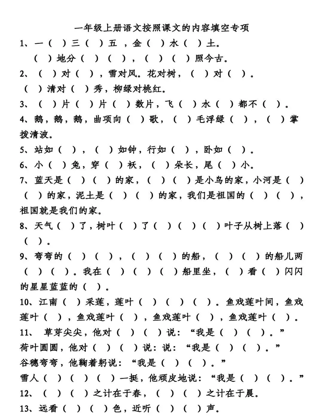 10、江南(可)采莲,莲叶(何)(田)(田)。鱼戏莲叶间,鱼戏莲叶(东),鱼戏莲叶(西),鱼戏莲叶(南),鱼戏莲叶(北)。