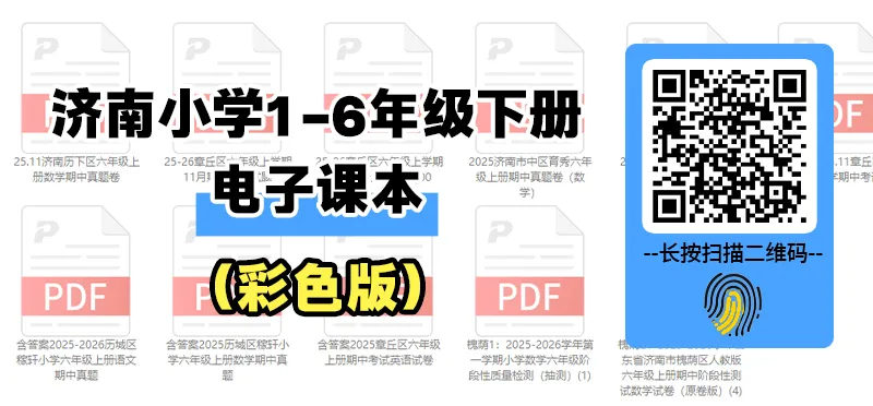 halo呀家长朋友们,今天给大家整理了济南小学1-6年级下册电子课本,不少学校已经开始学习下册知识,咱们需要的家长可以给孩子领取一份,扫描文首二维码就可以下载!
