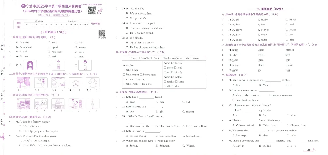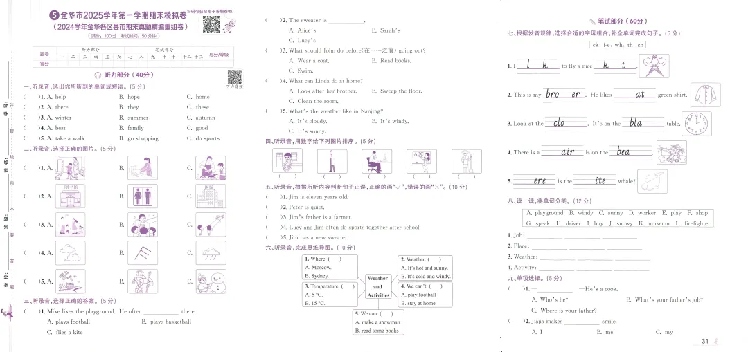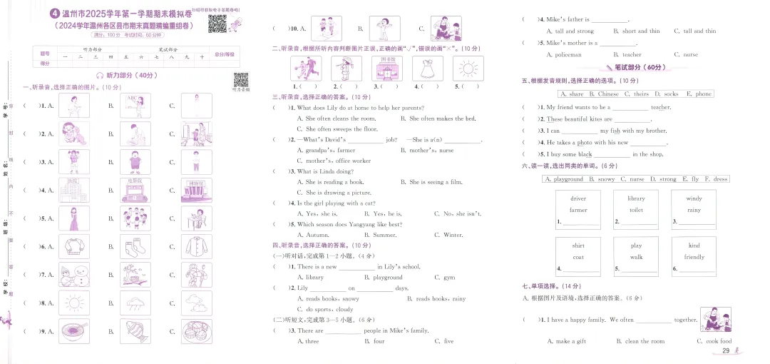 >PEP人教版新教材小学英语四上浙版期末真题