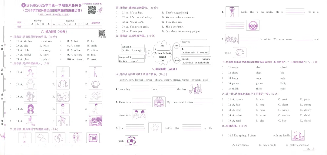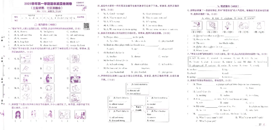 PEP人教版新教材小学英语四上浙版期末真题