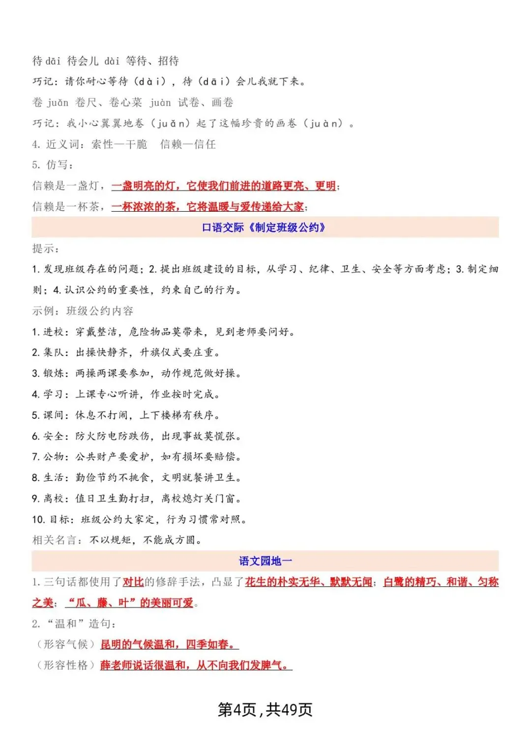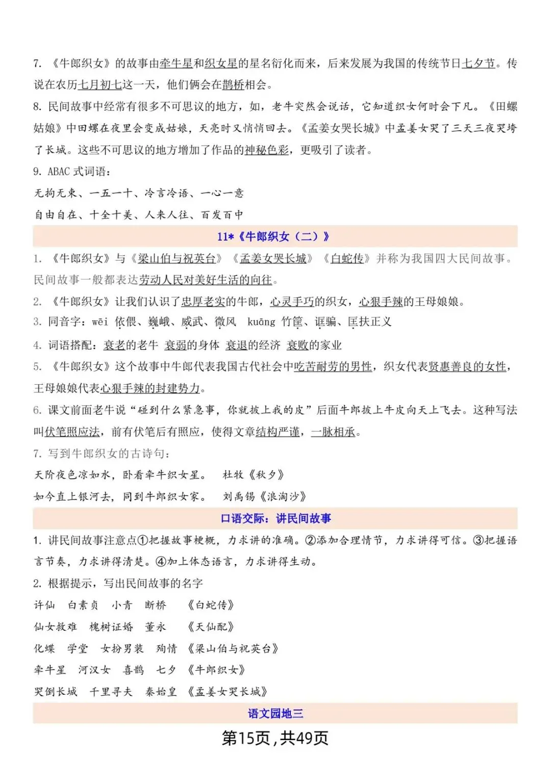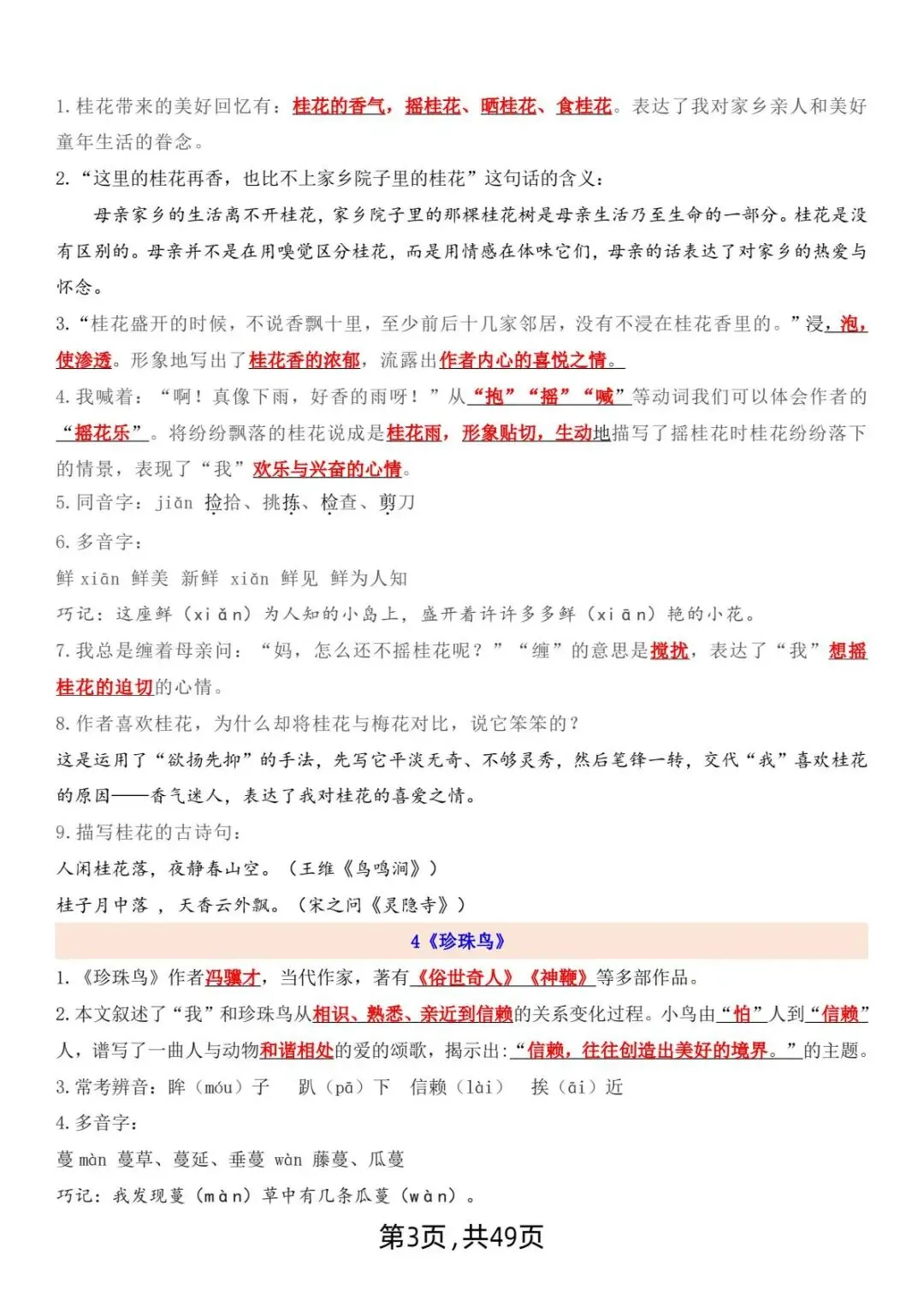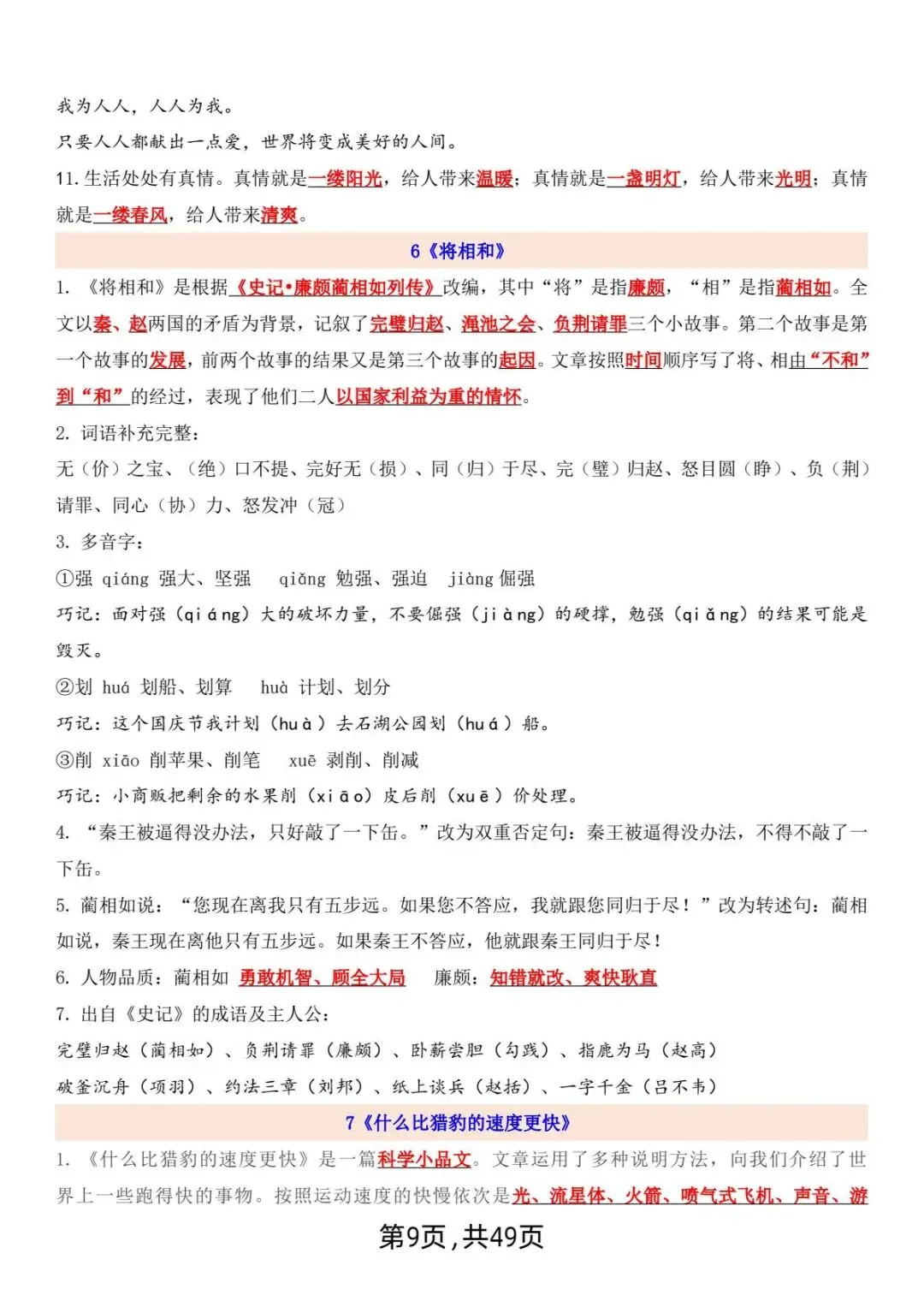 【小学语文】五年级(上)语文1-8单元课本详细知识考点