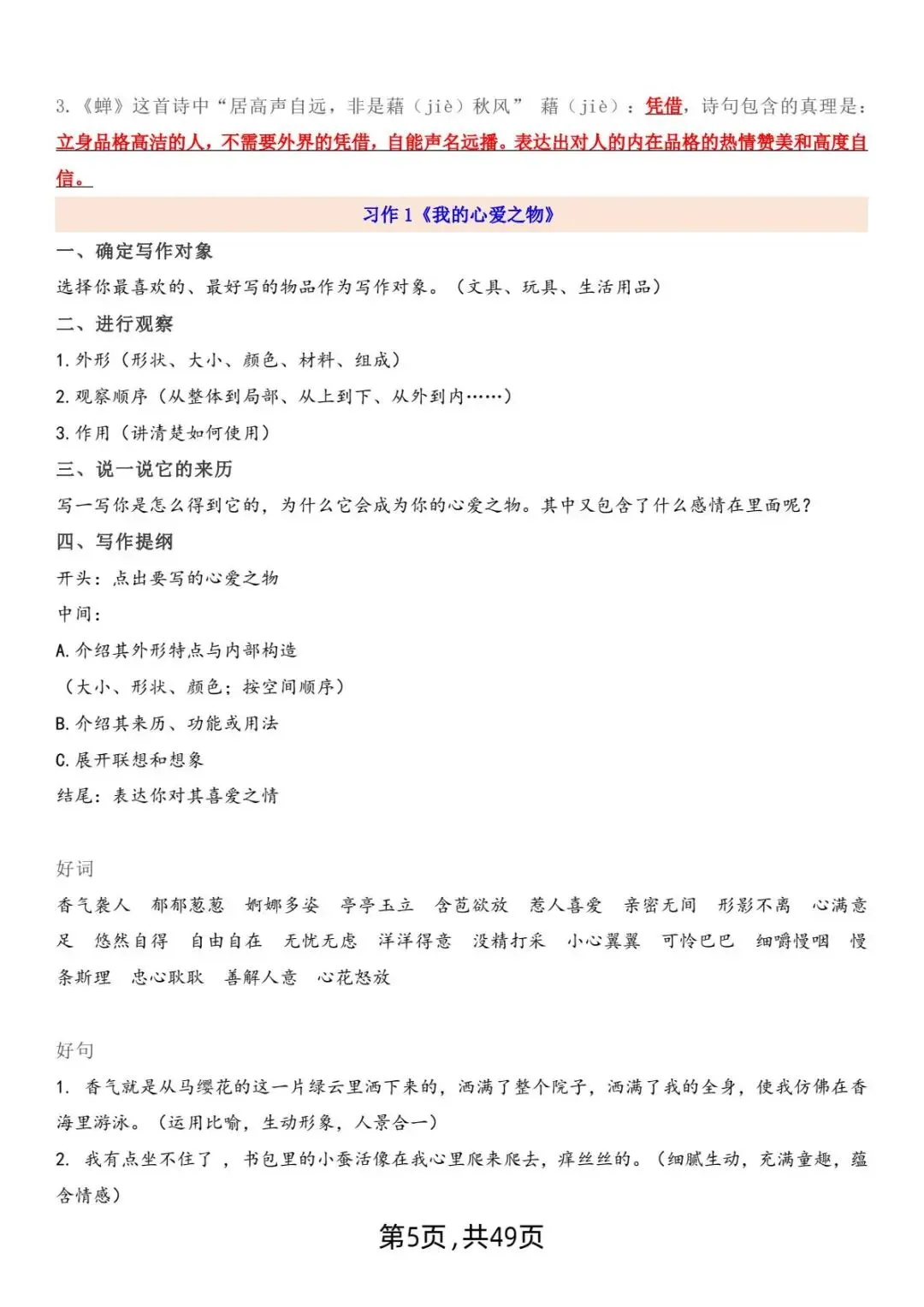 >【小学语文】五年级(上)语文1-8单元课本详细知识考点