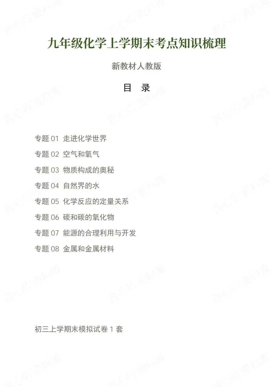 新教材初三上期末知识梳理,· 空气氧气/物质构成· 化学反应/碳/金属人教版,