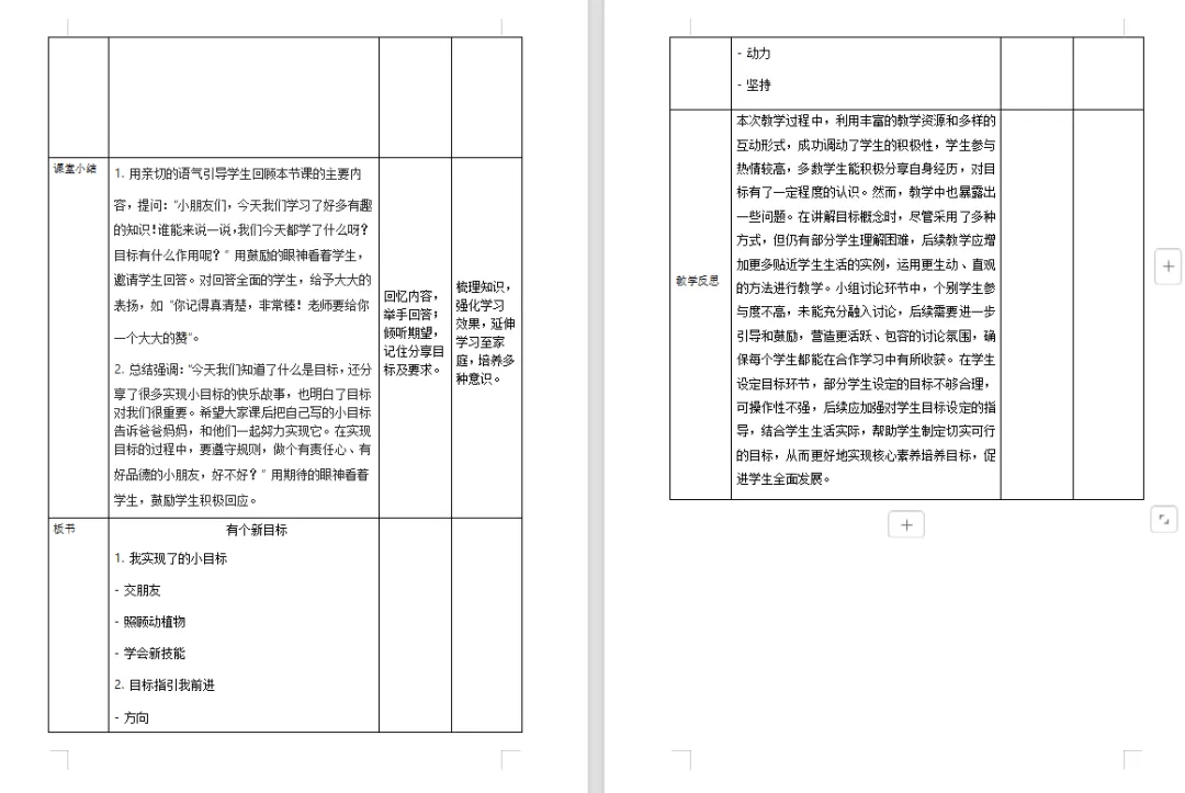 【道德与法治教案课件】新教材部编版小学道德与法治一年级下册全册核心素养表格配套教案课件(带反思)第1课《有个新目标》