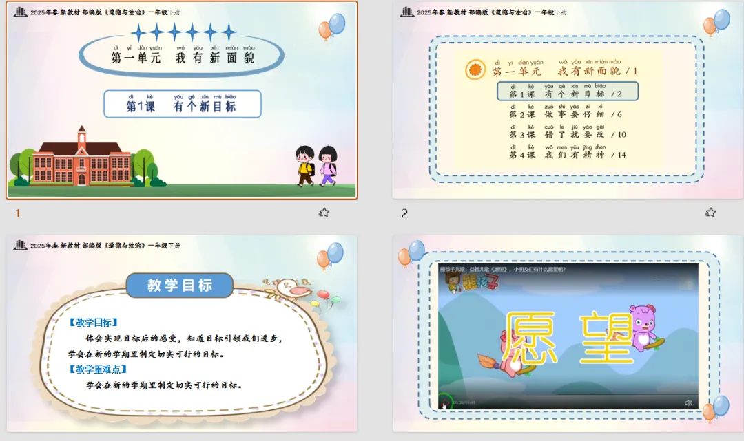 【道德与法治教案课件】新教材部编版小学道德与法治一年级下册全册核心素养表格配套教案课件(带反思)第1课《有个新目标》