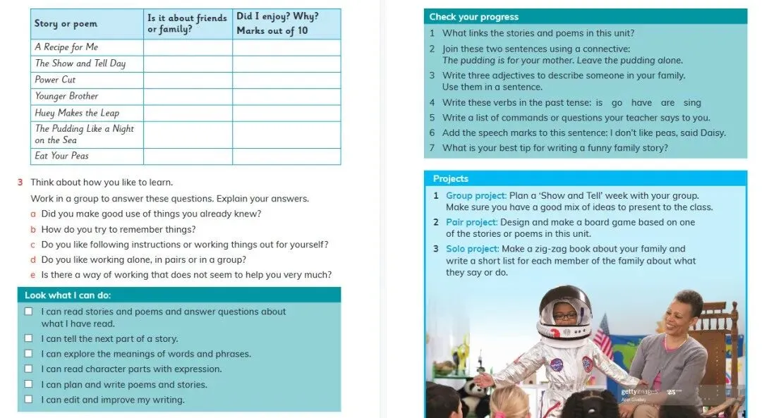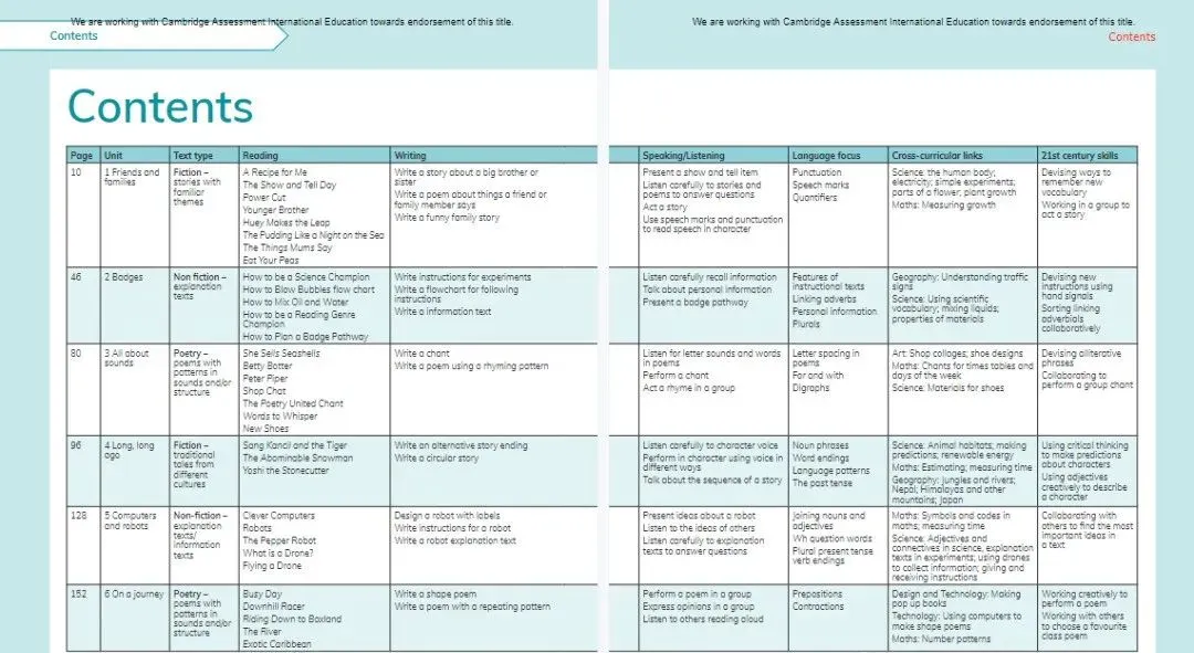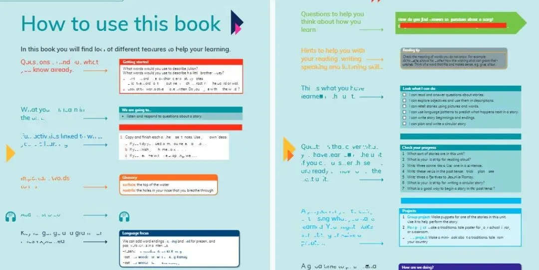 每个单元都设计了涵盖阅读、写作、口语和听力等多方面技能的活动。此外,教材还重视培养学生的协作和批判性思维,使孩子在语言学习的同时培养更广泛的能力。