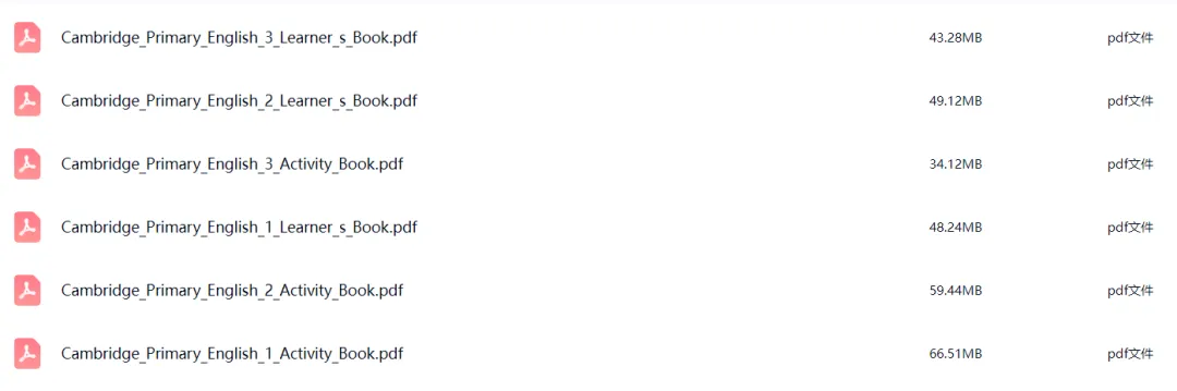 今天给大家带来的是剑桥国际小学英语教材《Cambridge Primary English》1-6级学生书+练习册。这套教材是由剑桥大学出版社与剑桥考评部(Cambridge Assessment)联合打造的官方小学英语教材,专为英语作为第一语言(EFL)的小学阶段学习者设计,完全契合剑桥国际小学课程框架(Cambridge Primary Curriculum Framework)的六个阶段(Stage 1-6),对应 6-12 岁儿童的小学 1-6 年级学习周期。学完可以无缝衔接剑桥 Lower Secondary English 及剑桥英语考试体系(YLE/KET/PET)。