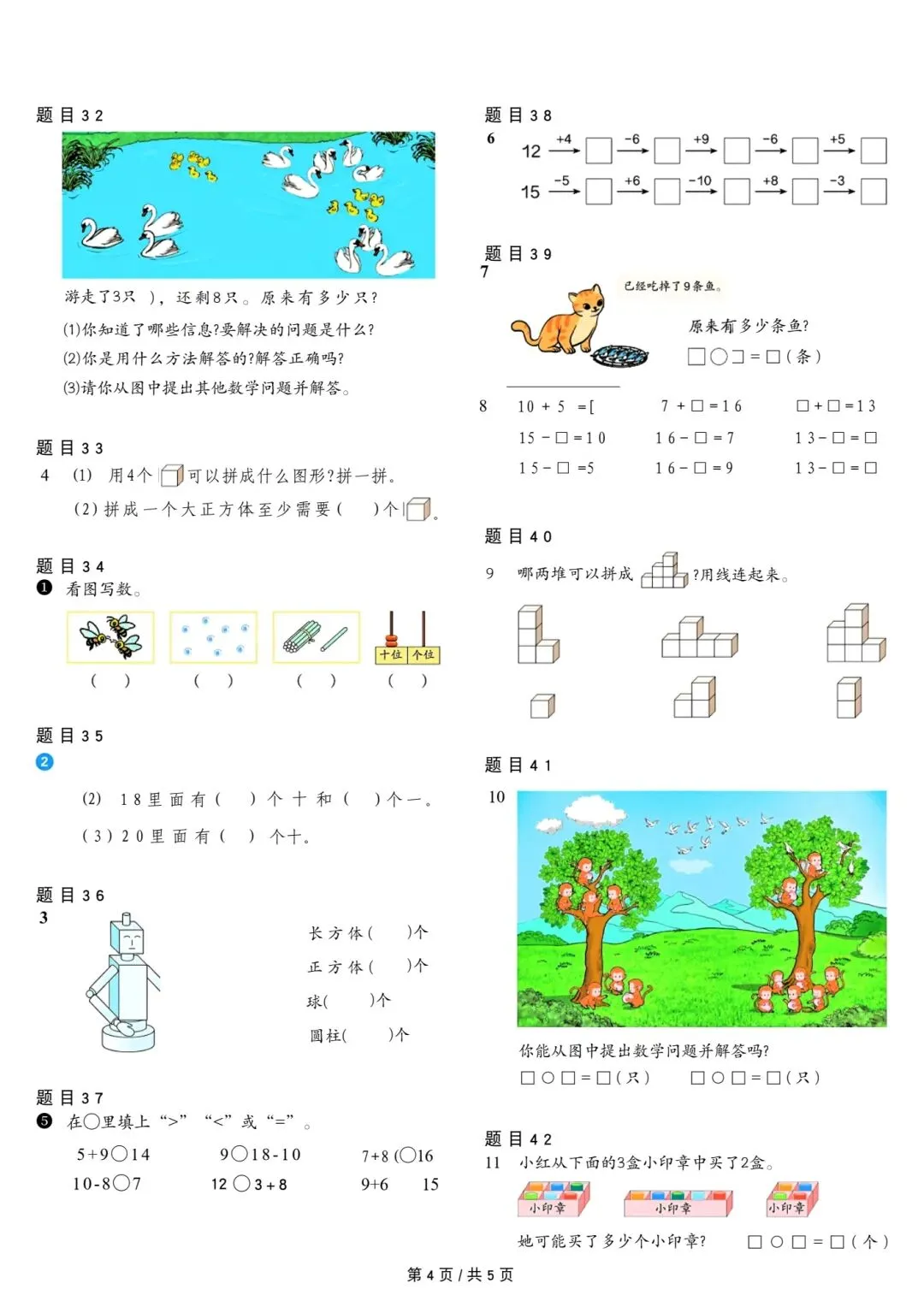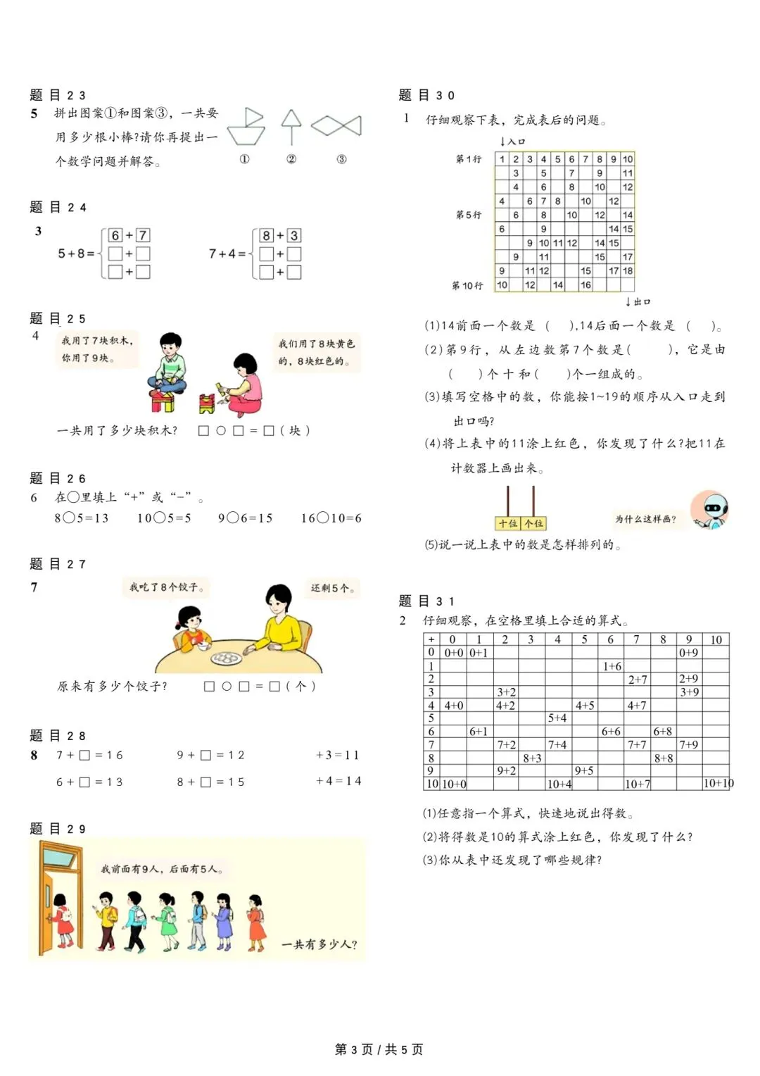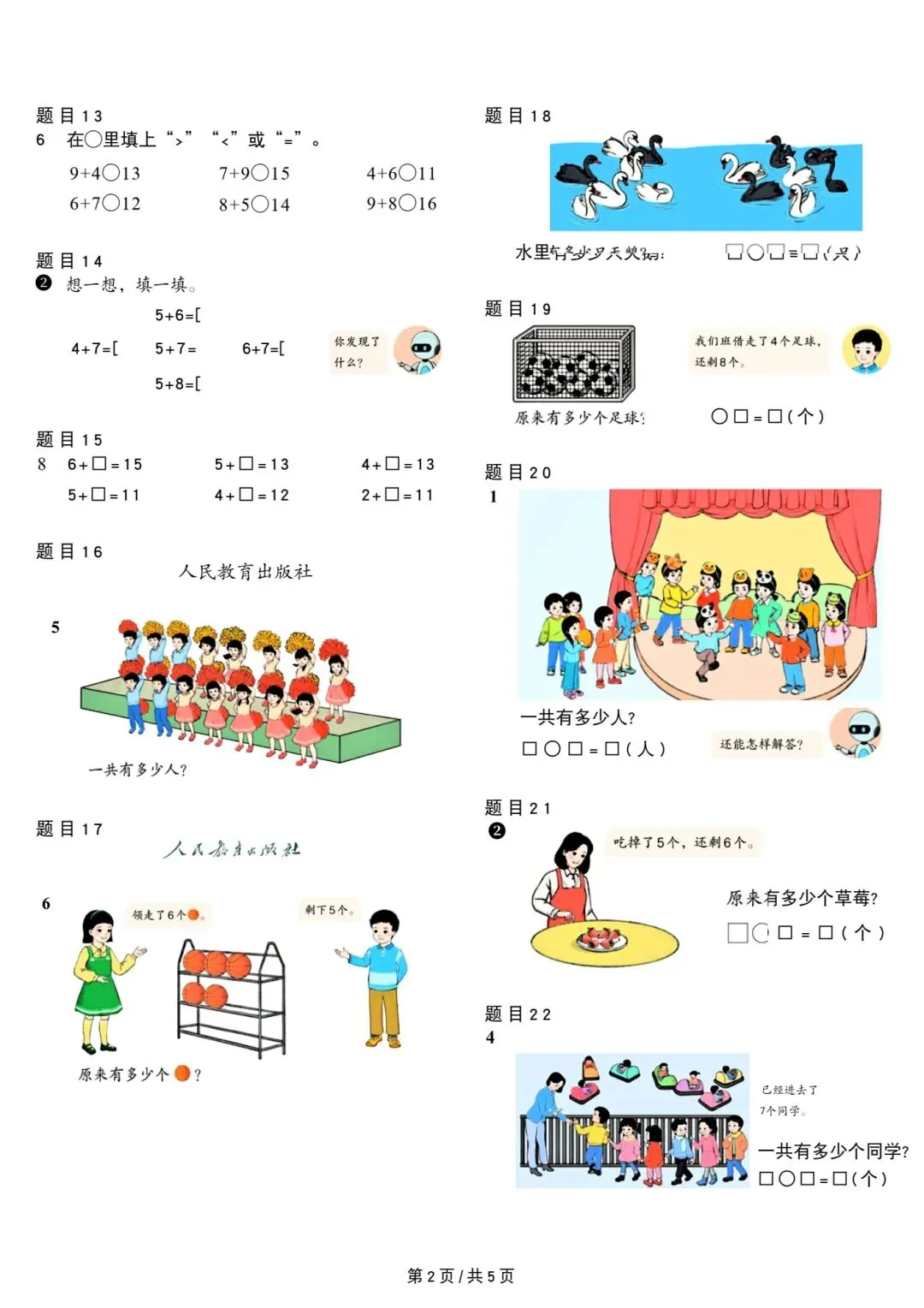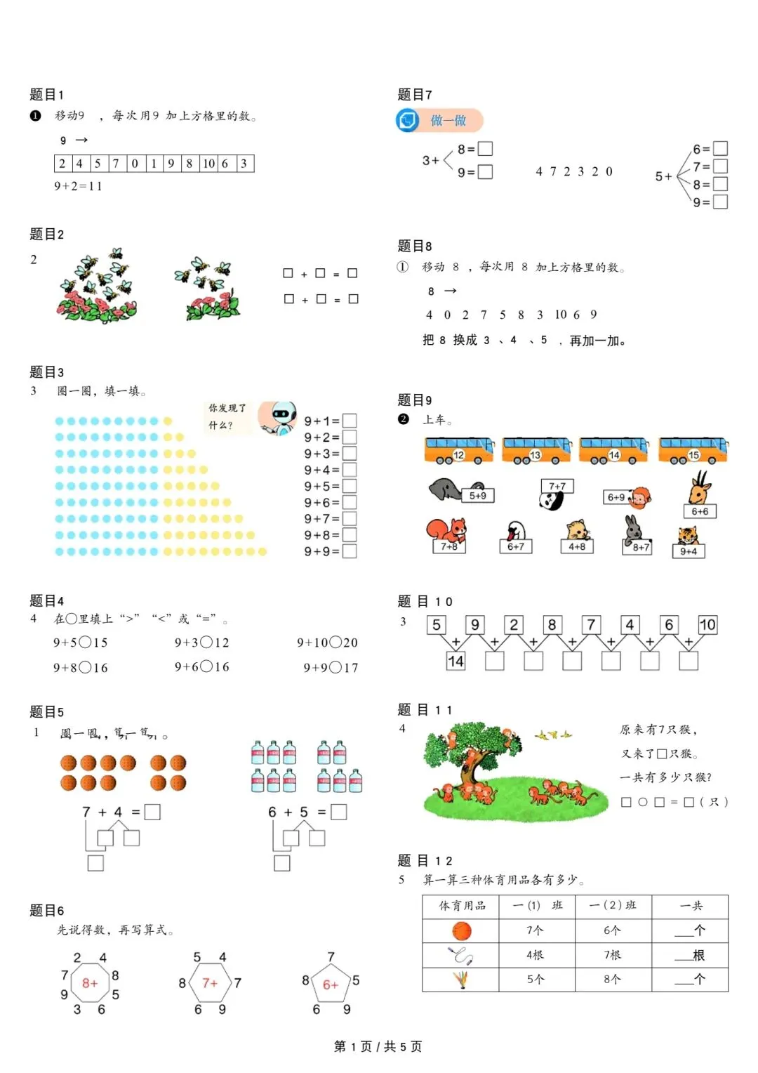 人教版小学数学一年级上册课本原题整理