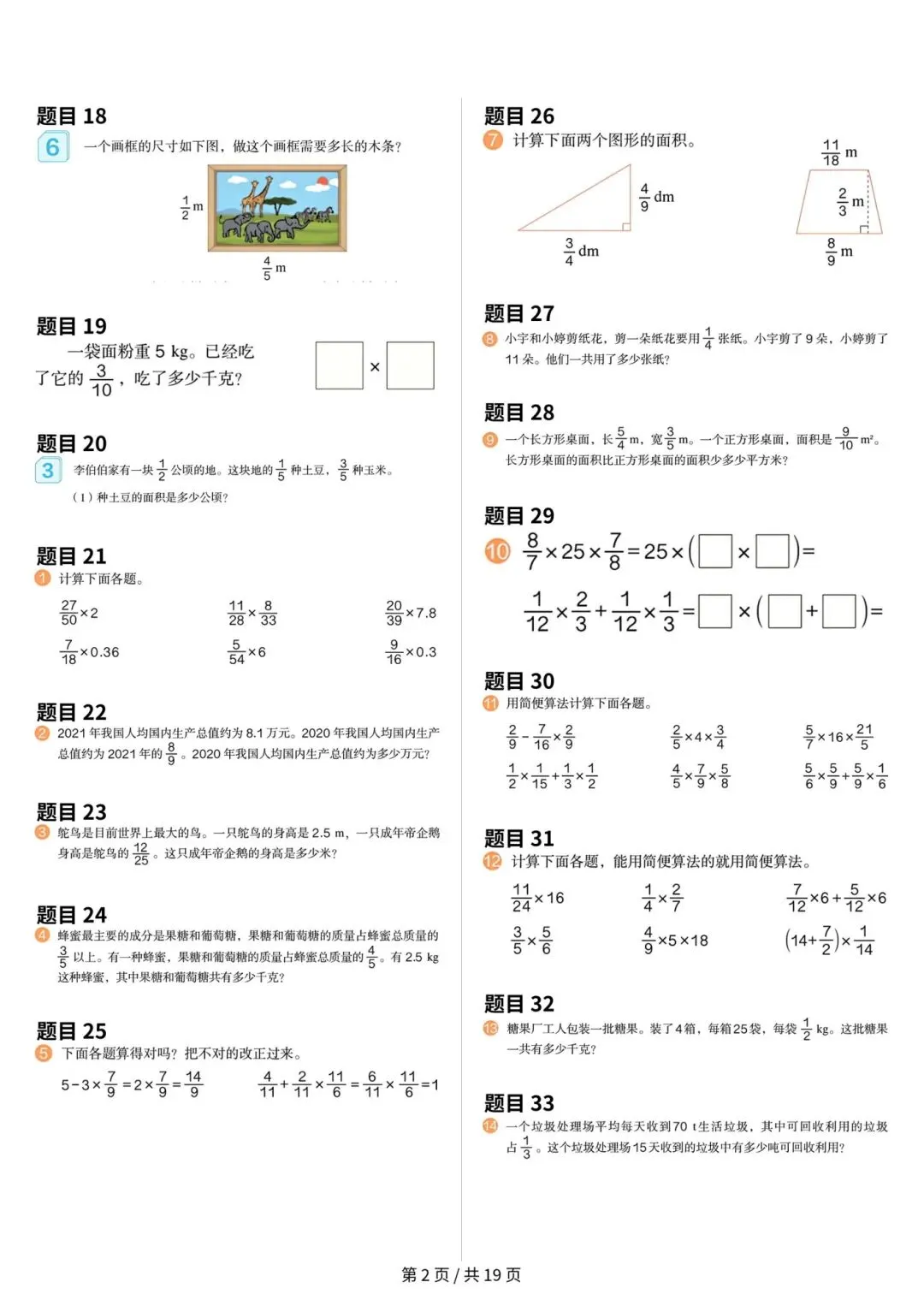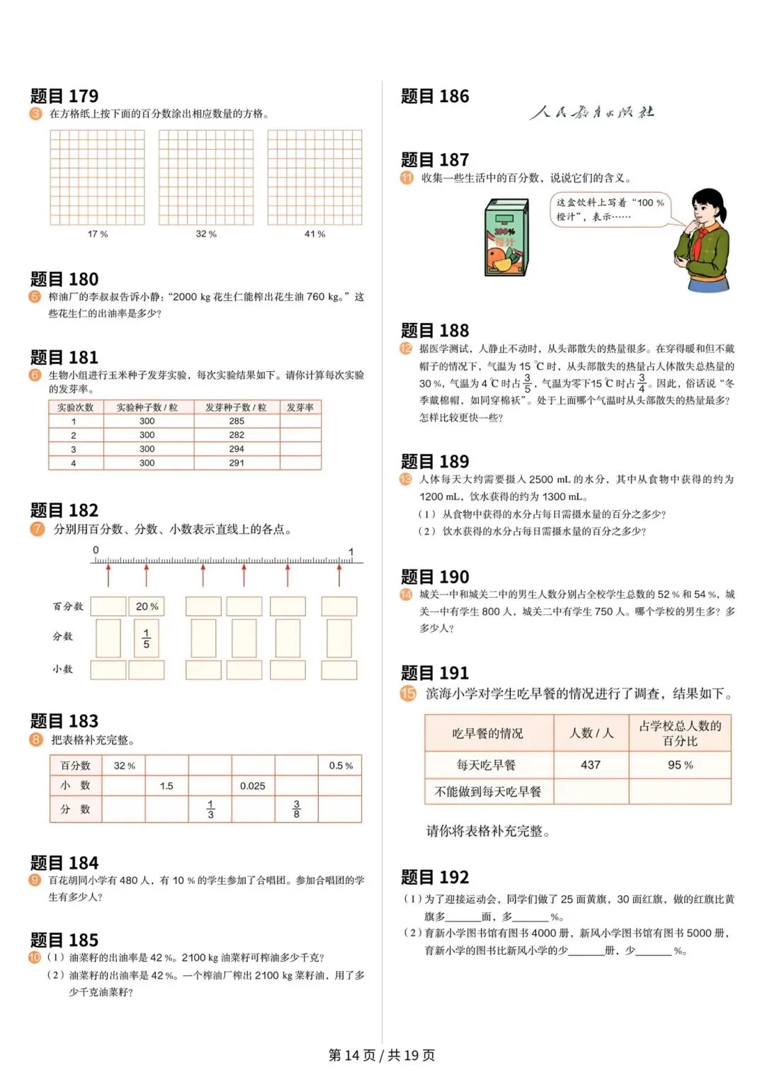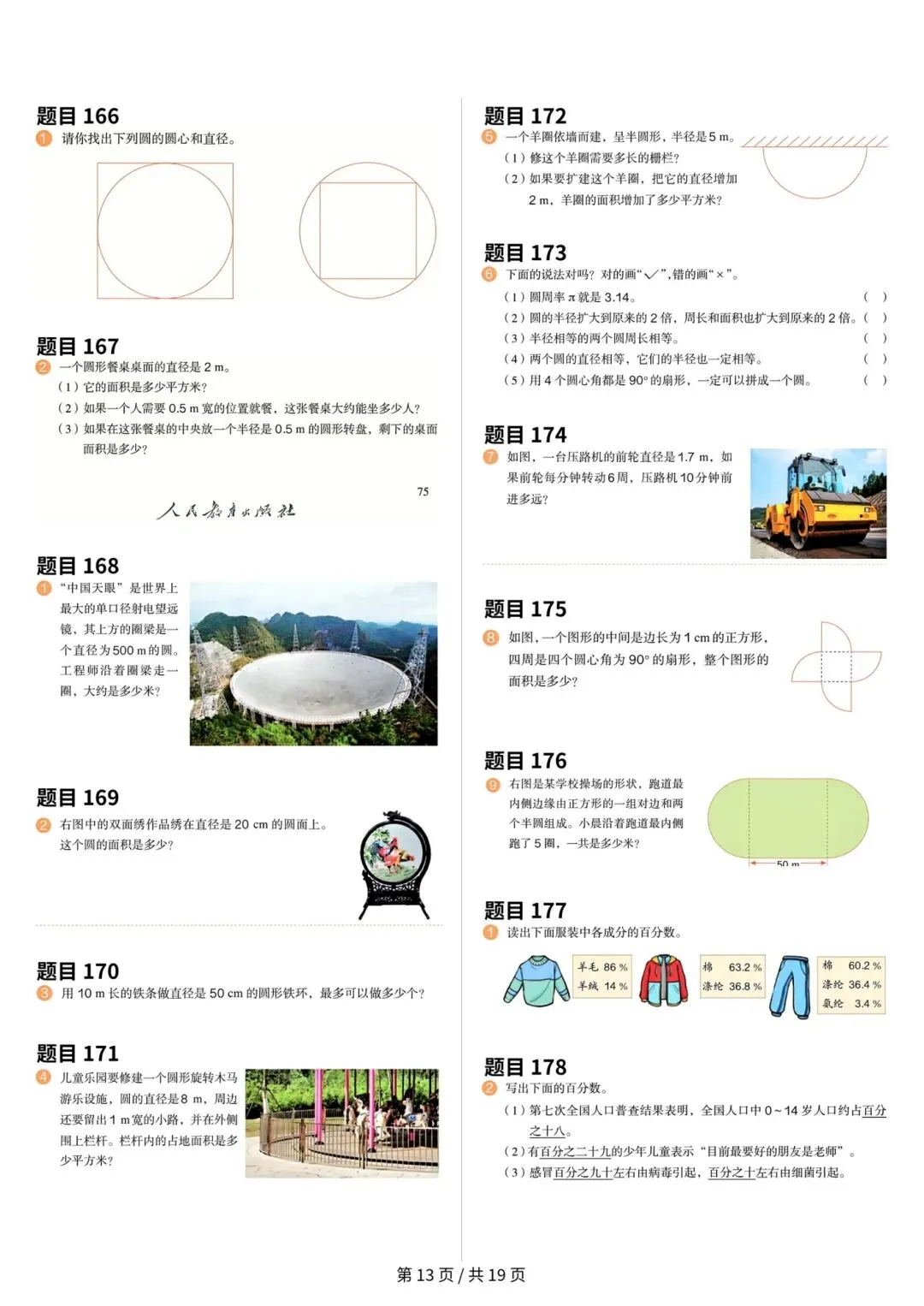 人教版小学数学六年级上册数学课本原题整理