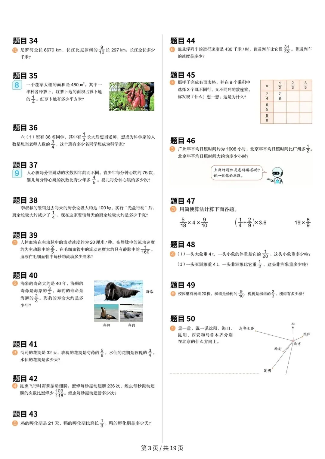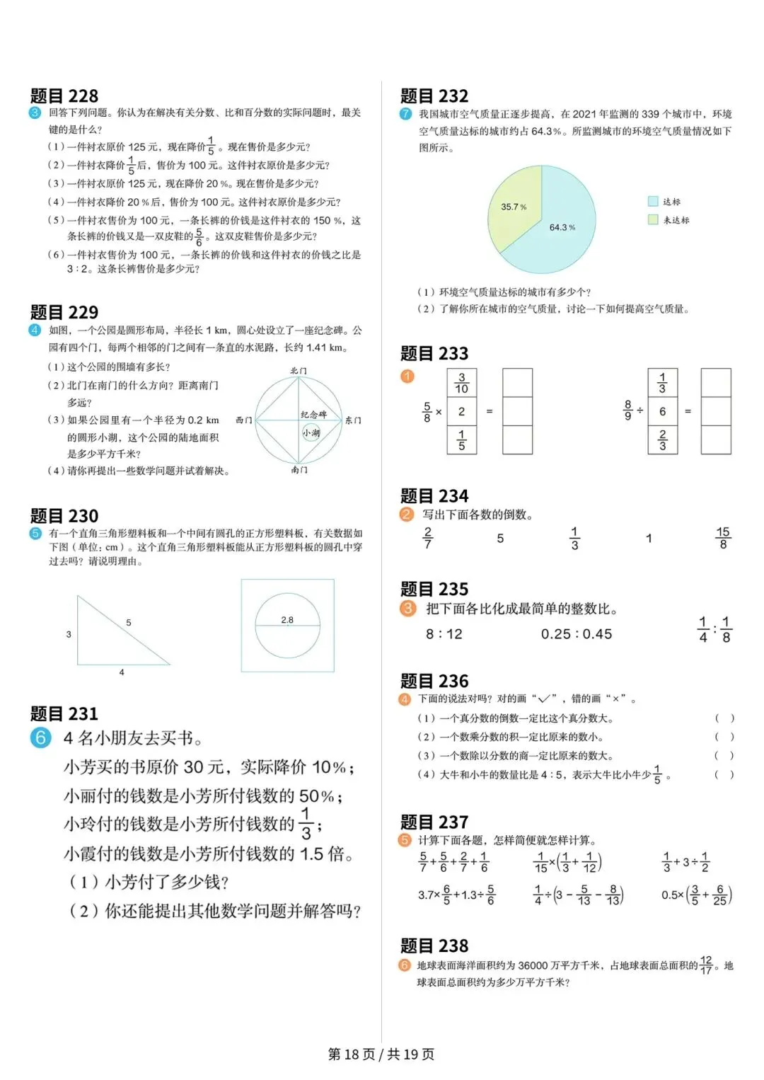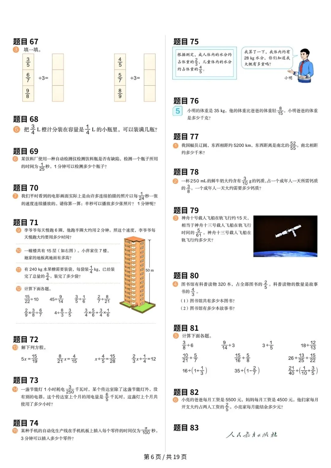 >人教版小学数学六年级上册数学课本原题整理