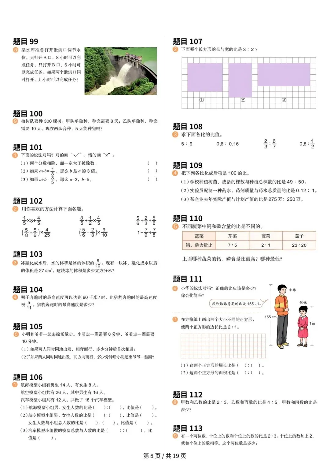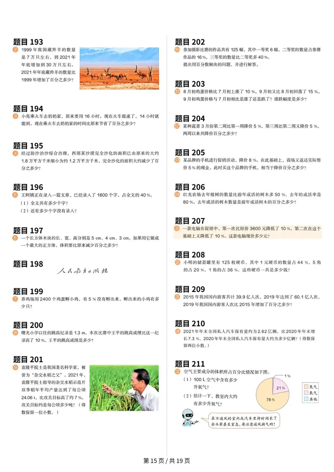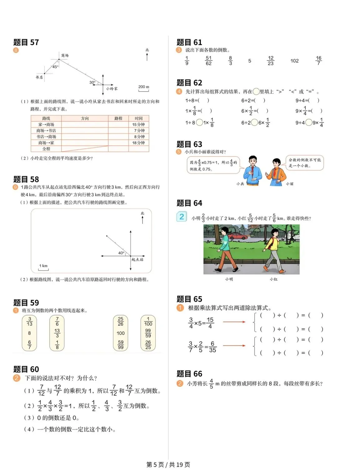 >人教版小学数学六年级上册数学课本原题整理
