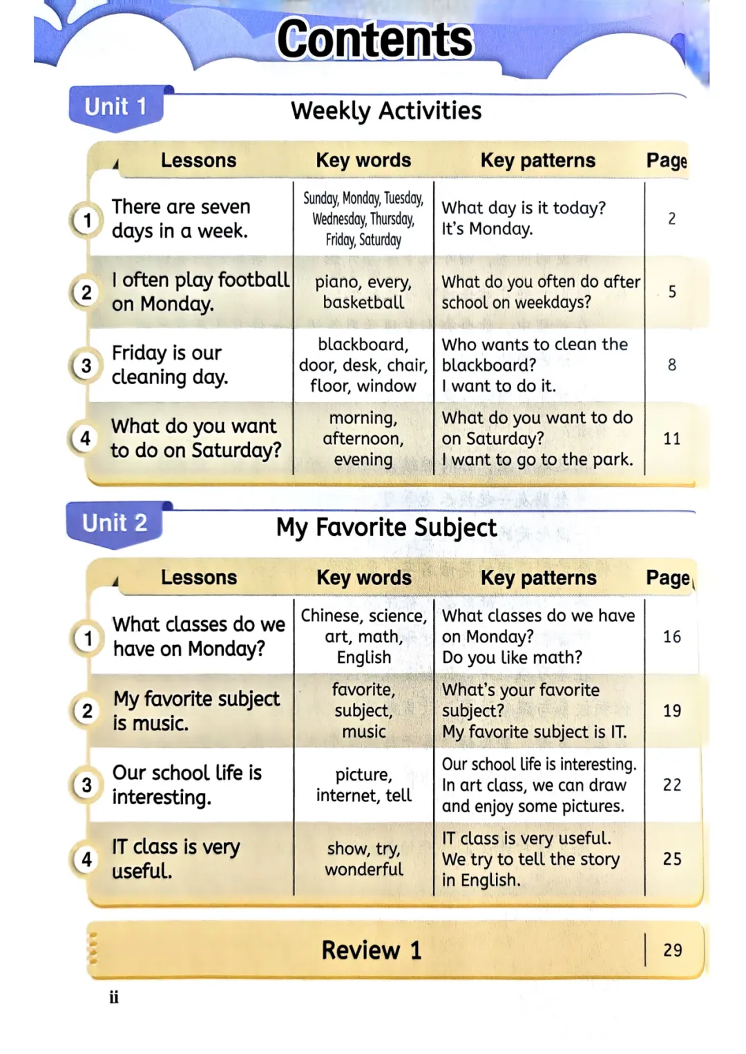 >(新版)闽教版小学英语四年级下册教材内容