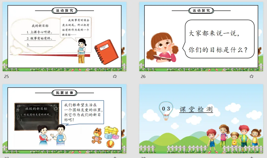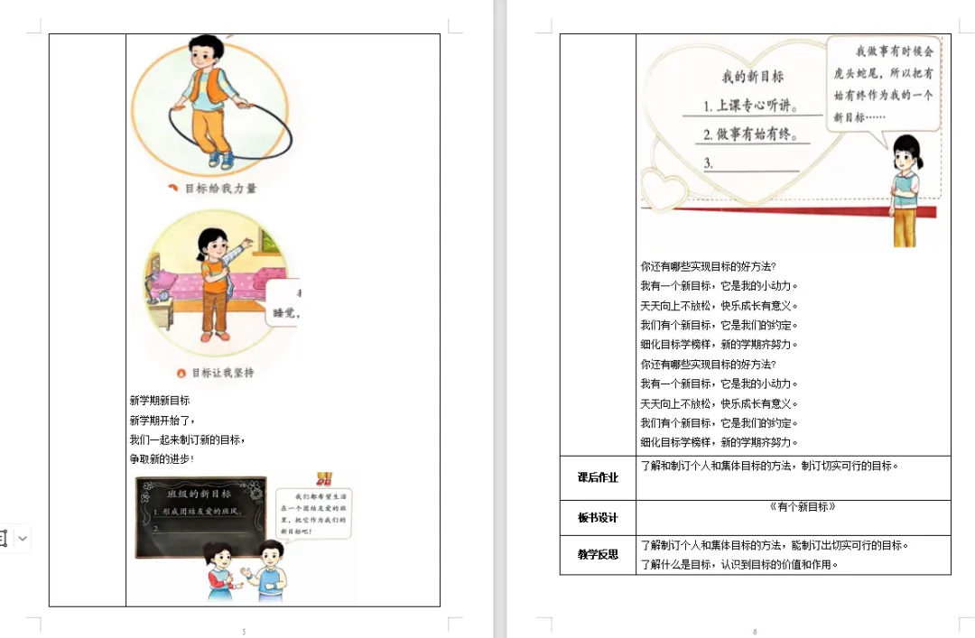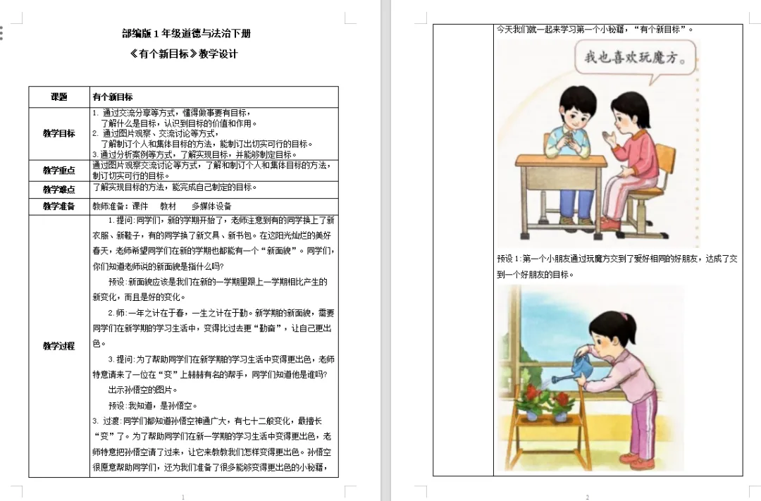 【道德与法治教案课件】新教材部编版小学道德与法治一年级下册全册表格式配套教案课件第1课《有个新目标》